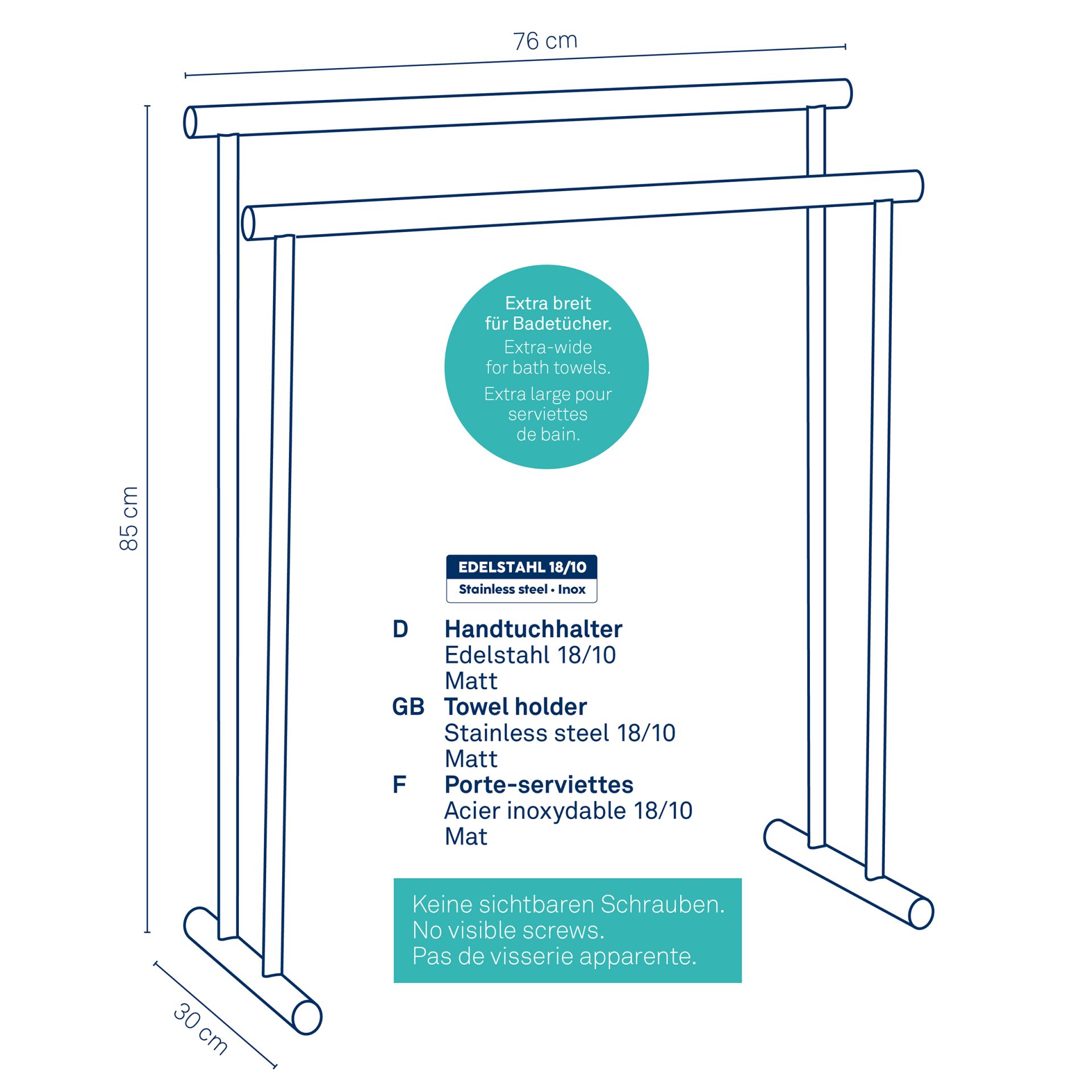 The Priamo towel holder is a blend of elegance and functionality, perfectly suited to the demands of a modern bathroom. With a distinctly minimalist design, this stainless steel holder in matte silver exudes sophistication that will not go unnoticed. Its aesthetic appearance, which is both simple and luxurious, easily fits into a variety of interior styles, from industrial to classic bathrooms. With two towel rails, this holder offers enough space to comfortably accommodate larger or several smaller towels, and the dimensions of 22×4.5×85.5 cm allow for optimal use of space without taking up too much space. Since it is made of high-quality stainless steel, the Priamo is extremely resistant to moisture, corrosion and wear, making it an ideal solution for a humid bathroom environment. In addition, the matte silver color not only gives an elegant visual impression, but is also easy to maintain, making it a long-lasting and practical choice for any home. With small dimensions and easy installation, this holder is ideal for anyone who wants to improve the functionality and aesthetics of their space with a modern and sophisticated piece of equipment.