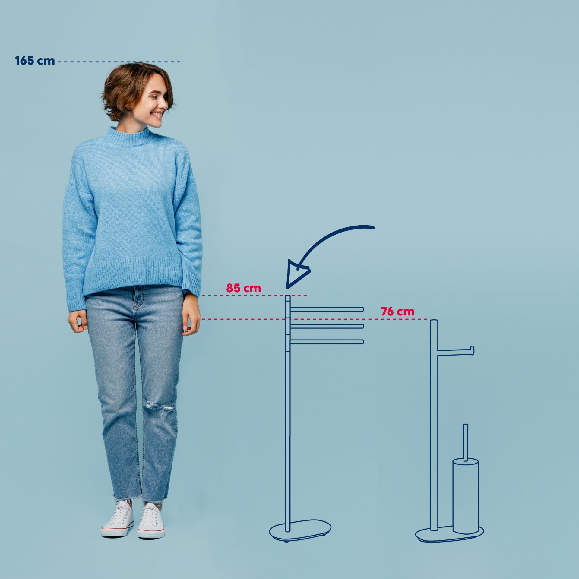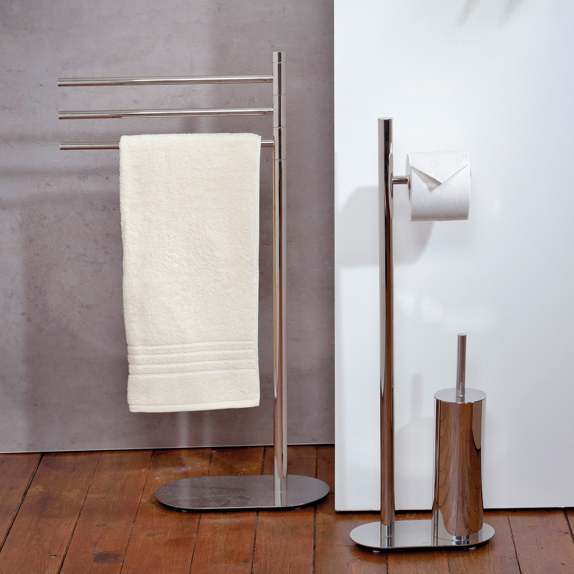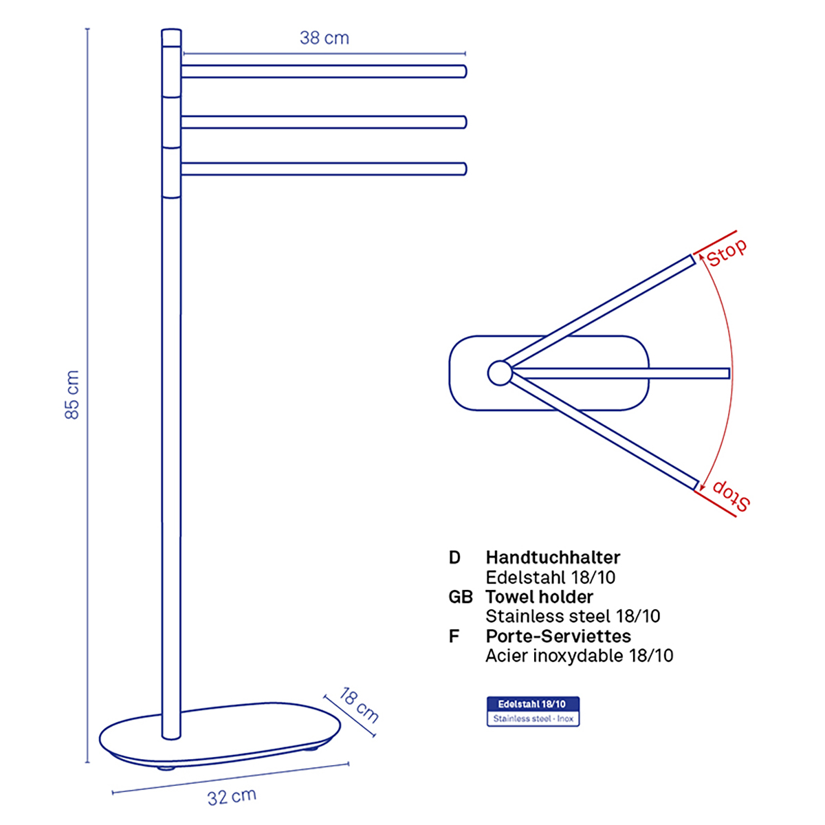 The Lucido towel holder brings elegance and functionality to any bathroom thanks to its modern design and shiny stainless steel finish. Measuring 32 x 18 x 85 cm, it offers plenty of space for organized drying and storage of towels, while three practical bars allow for optimal air flow, preventing moisture from building up. Made of high-quality stainless steel, this holder ensures long-lasting resistance to moisture and corrosion, and its minimalist silver look blends perfectly with a variety of interior styles. The stable construction allows for easy installation without the need for drilling, making it the perfect solution for any bathroom where practicality comes first.