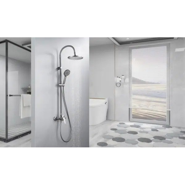 The modern shower system with dimensions 18x12x116 cm brings functionality and style to your bathroom, providing a perfect showering experience. With a shower rose that offers a single function for a wide, even stream of water, it is ideal for a relaxing and refreshing shower. The shower wand with three functions allows you to adapt to your mood – choose between different types of jets that perfectly adapt to your needs, from a gentle spray to a powerful massage jet. Made of durable materials such as silicone, brass and stainless steel SS201, this shower system ensures durability and resistance to moisture and wear. It is equipped with a 1.5-meter PVC hose that provides flexibility and ease of use. Elegant design, gray color and quality materials make it perfect for a modern bathroom, where a balance between aesthetics and reliable performance is required.