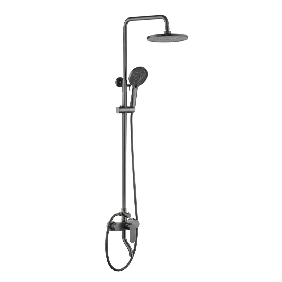 A shower system that combines elegance, functionality and ultimate showering pleasure. Made of stainless steel, this system in a modern grey colour fits perfectly into any bathroom style, providing long-lasting durability and resistance to moisture and corrosion. The star of this system is the 23 cm diameter shower head, which ensures a pleasant and even water flow of up to 13.4 l/min, creating a rain shower effect for a relaxing experience. For additional flexibility and customization, the 12 cm diameter shower bar comes with five different functions, allowing you to adjust the spray to your personal preferences – from a gentle mist to a more powerful jet for a revitalizing feeling. The practical 1.5 meter long hose allows complete freedom of movement, while the overall dimensions of the system (20 × 11.1 × 135.4 cm) ensure easy installation in most bathrooms. With a maximum water flow of 8.2 l/min through the shower bar, this system provides a pleasant and efficient shower with optimal water consumption. The combination of premium materials, modern design and multiple spray adjustment options makes this shower system the perfect choice for those who want a blend of aesthetics and practicality in their bathroom.