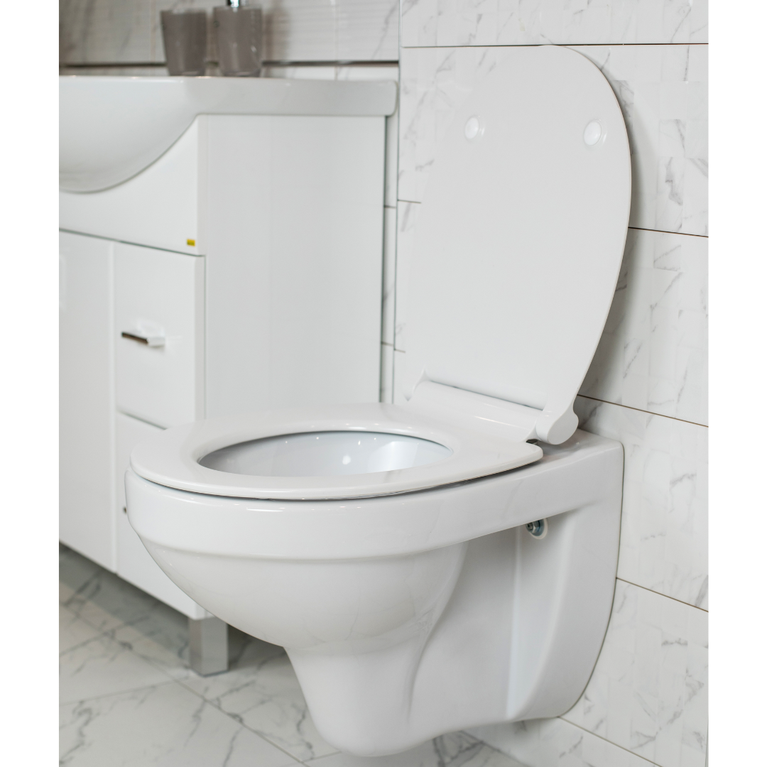 The white toilet seat is equipped with a soft close mechanism that enables noiseless closing, and at the same time protects fingers from injuries, especially in small children. It is made of high-quality duroplast. Dimensions: 44.7×37 cm