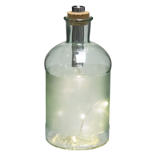 A lamp in a bottle will bring a dose of creativity to any room. An innovative item that will be the envy of all your guests. Made of tough glass. Dimension: 11x22cm.