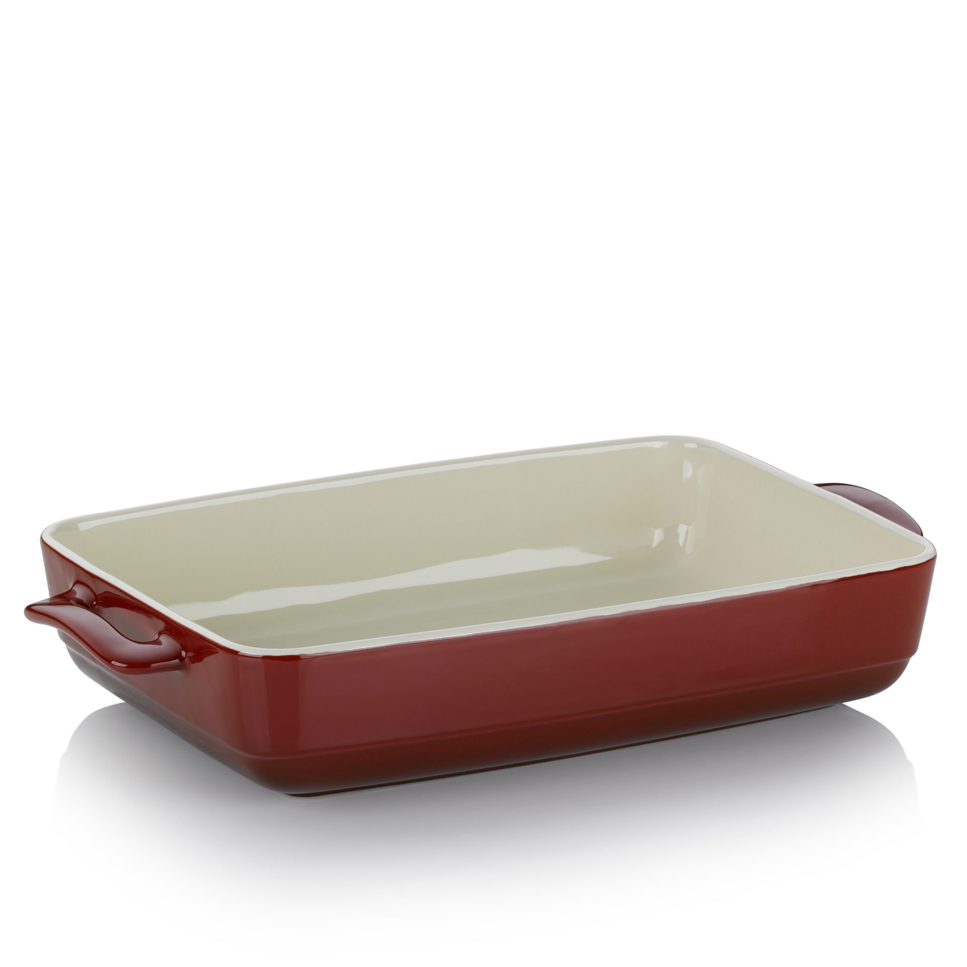 The rectangular Malin ceramic baking pan in vibrant red color brings not only functionality, but also aesthetics to your kitchen! With dimensions of 37.5x22x7 cm, this roaster is deep enough to satisfy all your culinary needs, allowing you to prepare a variety of dishes – from juicy roasts to delicious lasagna or even sweet desserts. Ceramic ensures even distribution of heat, which results in perfect baking of every dish. The handles on the side make it easier to transfer the pan from the oven to the table. In addition, the red color of this roaster adds a touch of liveliness and elegance to your serving, making it the perfect piece for any occasion – from family dinners to formal gatherings. Make every meal a special occasion with a rectangular ceramic baking tray that combines functionality and style.