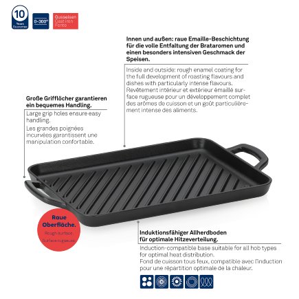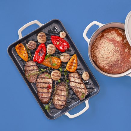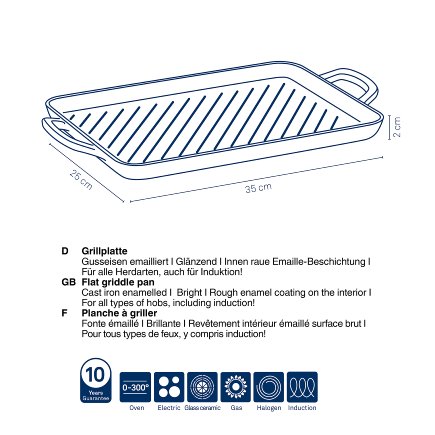 Calido grill plate made of cast iron is the perfect solution for all lovers of grilling and preparing delicious dishes! With high build quality, this panel not only offers outstanding performance, but also brings a touch of style to your kitchen or outdoor space. The shiny gray exterior draws attention and adds vibrancy to your grill, while the black rugged interior allows for even heat distribution, resulting in perfectly cooked food. The dimensions of 35x25x2 cm provide enough space for the preparation of various types of meat, vegetables and seafood, while the high slits not only improve the appearance of the food, but also ensure optimal drainage of excess fat. This improves the taste and makes meals healthier, and your meals will look like those from a restaurant. In addition to excellent outdoor grilling, this plate is also resistant to temperatures up to 300°, which makes it suitable for use in the oven as well. Regardless of whether you are baking at home or enjoying outdoor gatherings, the handles on the side make it easy to carry and manipulate the plate, which further improves the experience of preparing food. Take advantage of every moment spent in the kitchen or on the grill with a cast iron grill plate that allows you to have every bite perfectly cooked and full of flavor.