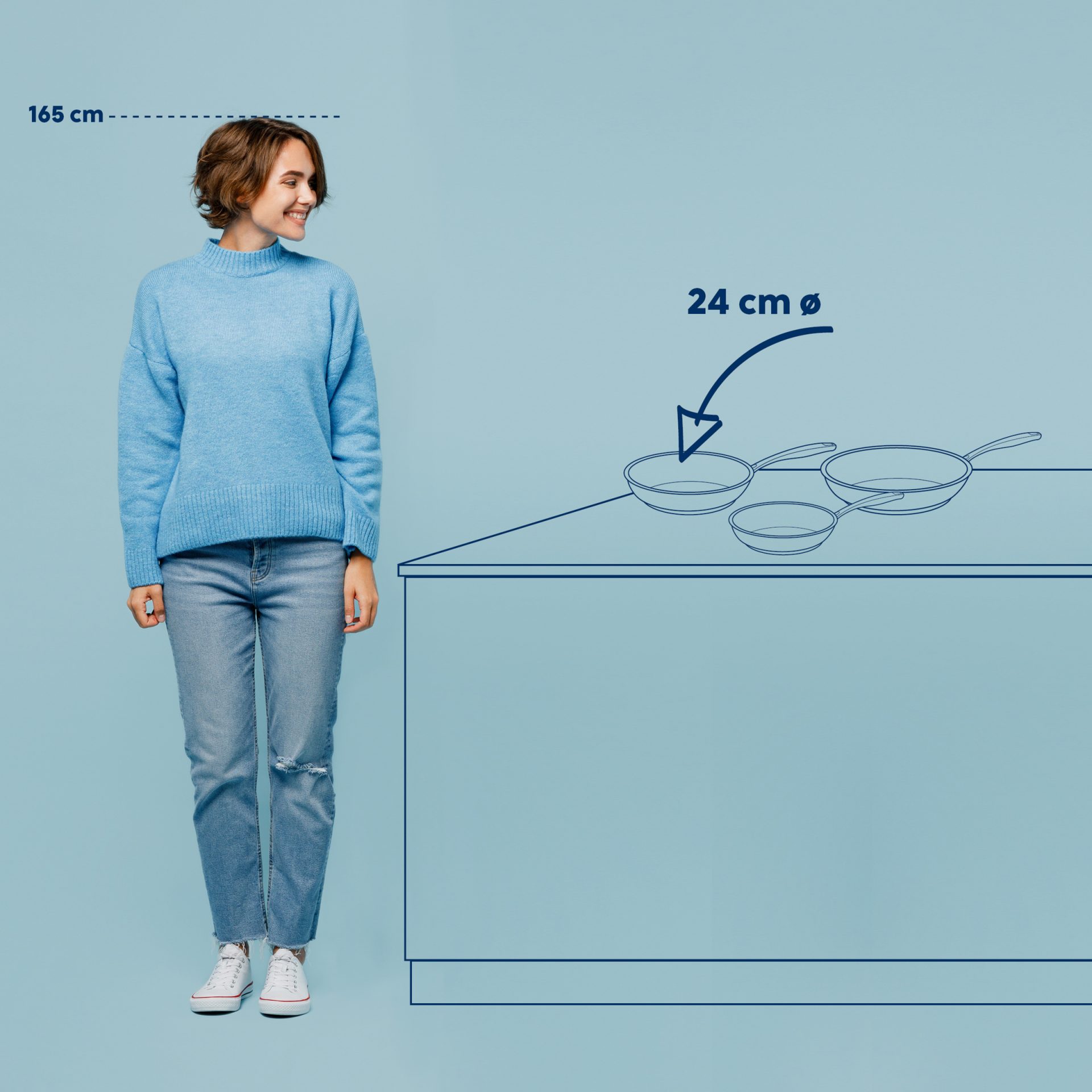 The Flavoria pan offers superior performance and professional quality that will satisfy even the most demanding chefs. Made from high-quality 18/10 stainless steel, it ensures a long-lasting and sturdy material that is resistant to rust, corrosion and damage, making it the perfect choice for everyday use in the kitchen. The cast stainless steel handle ensures safety and comfort when holding, while it is designed to stay cool and safe to handle. The pan is compatible with various types of stoves, including induction hobs, making it ideal for all types of cooking, regardless of your kitchen equipment. Capable of withstanding temperatures of up to 220°C, it gives you versatility when preparing a variety of dishes, from frying to high-temperature cooking. One of the most outstanding features of this pan is the professional ILAG Professional S – Maximizing Green non-stick coating, which offers an exceptionally high non-stick performance and excellent scratch resistance. This coating not only makes cooking and cleaning easier, but also meets the strict EU environmental requirements, ensuring safety and health during use. With dimensions of 24 cm in diameter and 5.5 cm in height, the pan can be used for a variety of culinary tasks, and its high-quality coating ensures long-lasting performance without compromise.