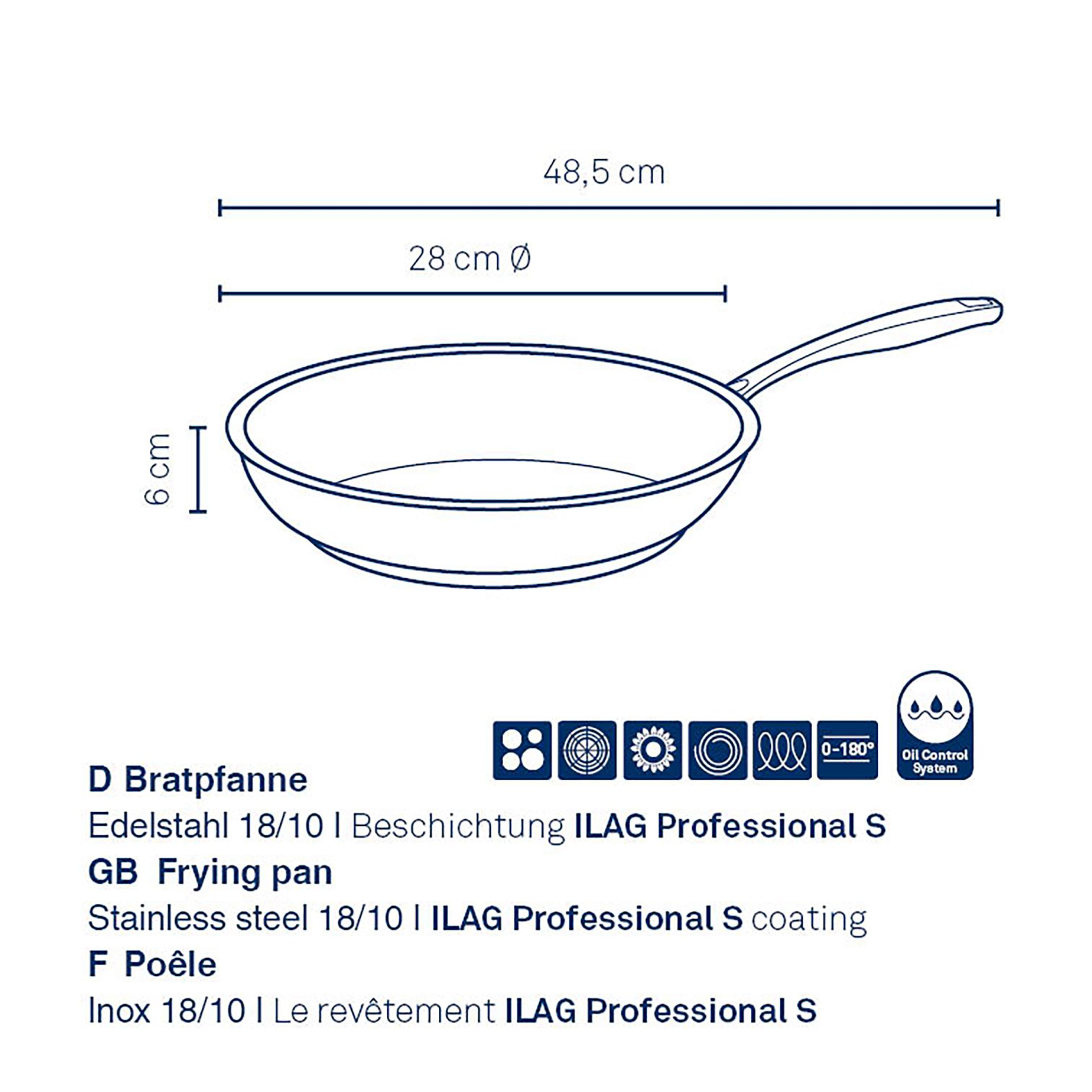 The Flavoria pan offers superior performance and professional quality that will satisfy even the most demanding chefs. Made from high-quality 18/10 stainless steel, it ensures a long-lasting and sturdy material that is resistant to rust, corrosion and damage, making it the perfect choice for everyday use in the kitchen. The cast stainless steel handle ensures safety and comfort when holding, while it is designed to stay cool and safe to handle. The pan is compatible with various types of stoves, including induction hobs, making it ideal for all types of cooking, regardless of your kitchen equipment. Capable of withstanding temperatures of up to 220°C, it gives you versatility when preparing a variety of dishes, from frying to high-temperature cooking. One of the most outstanding features of this pan is the professional ILAG Professional S – Maximizing Green non-stick coating, which offers an exceptionally high non-stick performance and excellent scratch resistance. This coating not only makes cooking and cleaning easier, but also meets strict EU environmental requirements, ensuring safety and health during use. With dimensions of 28 cm in diameter and 6 cm in height, the pan can be used for a variety of culinary tasks, and its high-quality coating ensures long-lasting performance without compromise.