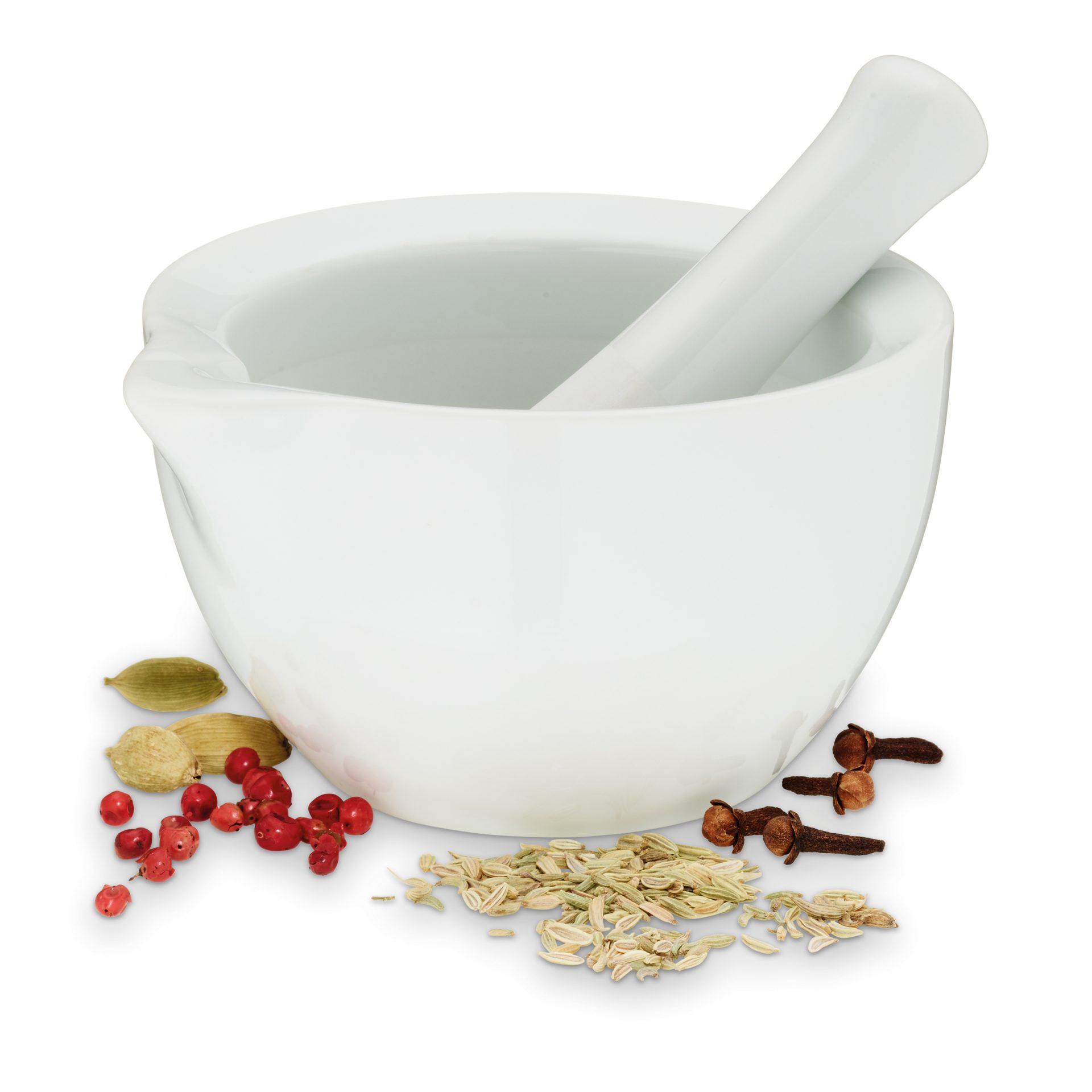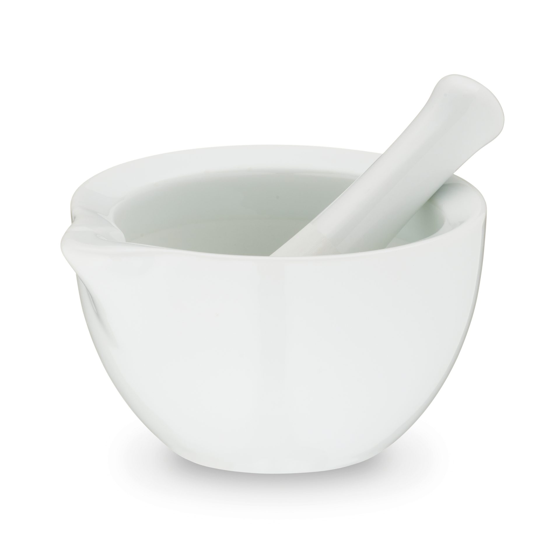 The elegant white porcelain mortar and pestle is the perfect addition to any kitchen, providing you with an easy way to prepare a variety of spices, herbs and other ingredients. This classic combination offers ideal strength and durability, allowing you to easily chop and mix ingredients to the desired consistency. With a height of 6 cm and a diameter of 10 cm, the mortar is compact enough to fit on any kitchen counter, while providing enough space for efficient mixing and crushing. The porcelain ensures that there is no odor or taste absorption, which means that each new use brings fresh aromas and not the remnants of previous mixes. Ideal for cooking enthusiasts, this mortar and pestle is perfect for preparing fresh herbs, such as basil or oregano, or for crushing nuts and spices. Its classic white color adds sophistication to your kitchenware, while being easy to clean and maintain. Regardless of whether you are preparing complex dishes or simple sauces, this mortar and pestle will be your indispensable helper in the kitchen.