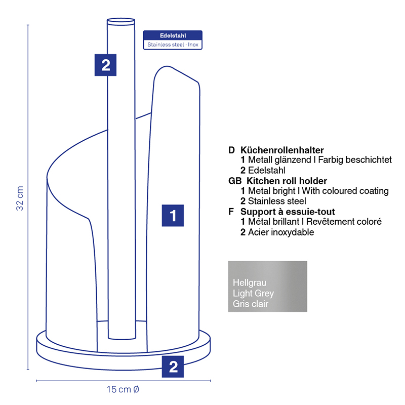 The Stella paper roll holder is the perfect blend of functionality and modern design, bringing sophistication and practicality to your space. Made of high-quality metal with an elegant gray finish, this holder easily fits into any interior, be it the kitchen, bathroom or workspace. The slightly curved shape not only adds to its aesthetic appearance, but also ensures easy unwinding of the paper roll, without getting in the way or getting stuck. With dimensions of 32×15 cm, the holder has an optimal size that allows for stable placement on surfaces such as tables, kitchen counters or drawers, while not taking up too much space. Given the solid metal construction, this product is durable, corrosion-resistant and easy to clean. In addition to contributing to functionality, its gray color adds an elegant, neutral tone to your space, and the curved shape brings a dose of sophistication and modern charm.