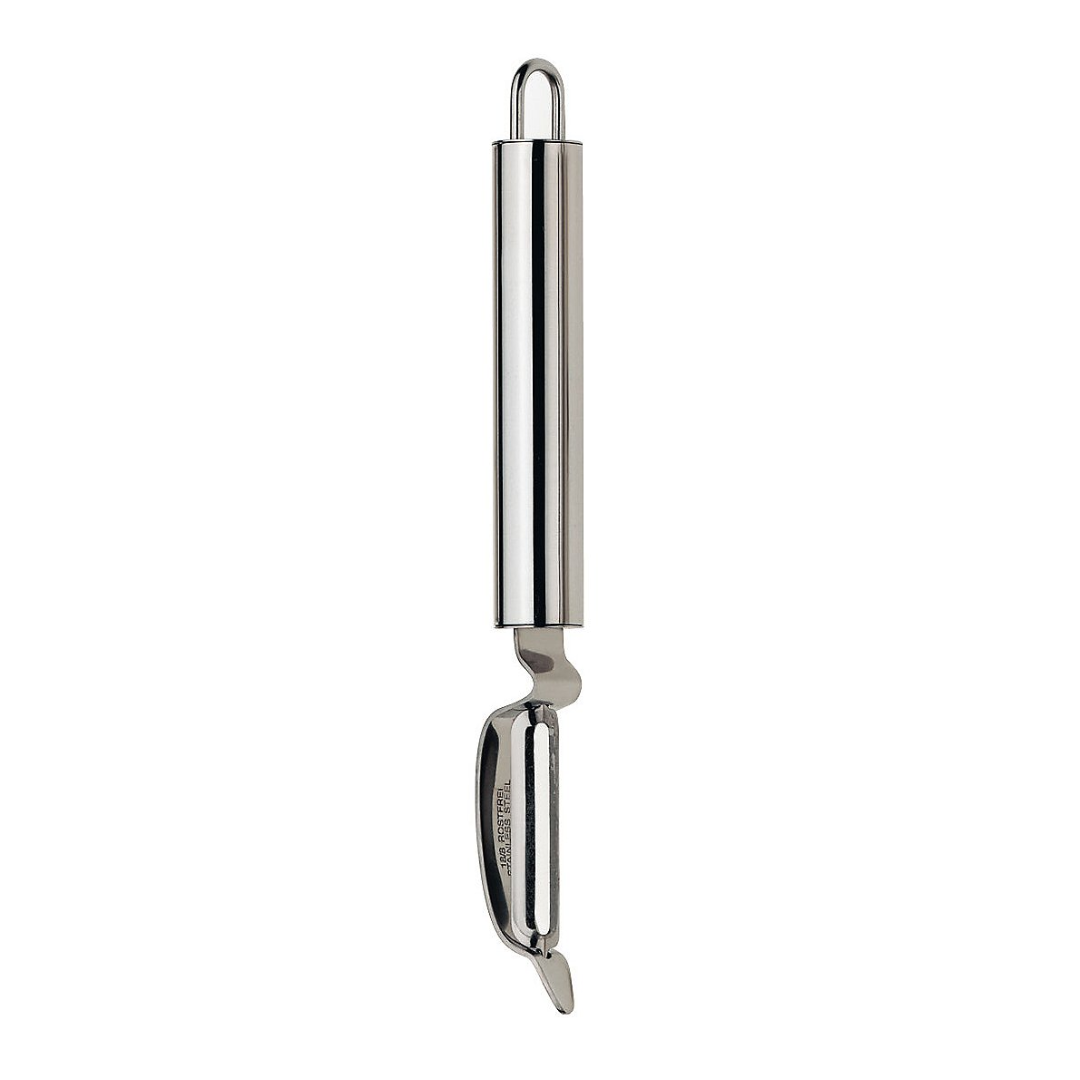 The Rondo potato peeler is an indispensable tool in every kitchen, designed for quick and efficient vegetable preparation. With a length of 19.5 cm, this practical tool allows you to easily remove the skin from potatoes, carrots and other vegetables, making your food preparation faster and easier. Made of high-quality stainless steel, the peeler boasts outstanding durability and rust resistance, which guarantees long-term use without losing quality. The silver finish not only adds to the elegant look, but also makes cleaning easier, saving time after cooking. The ergonomic design of the handle ensures a comfortable and firm grip, allowing you to easily and safely control the tool while peeling vegetables. The blade is specially shaped for fast and precise cutting, and the added advantage is ease of maintenance. Whether you are preparing a meal for the family or engaging in culinary experiments, the potato peeler will make your job easier.