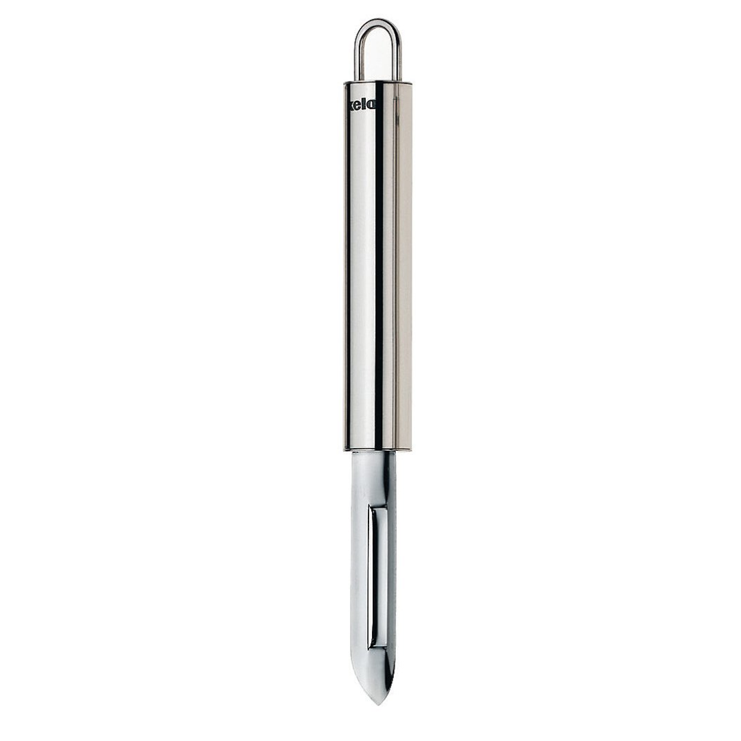 The Rondo potato peeler is designed to make everyday kitchen tasks easier, allowing you to quickly and precisely peel potatoes, as well as other vegetables and fruits. Its ergonomic length of 19 cm ensures comfortable and safe handling, providing stability and precision with every use. Thanks to the thoughtful design, the sharp blade glides through the peel effortlessly, reducing waste and speeding up the food preparation process. The silver finish gives this peeler an elegant and professional look, while the robust construction guarantees durability during long-term use. The peeler is made of high-quality steel that is resistant to rust, making it not only durable, but also easy to maintain. It is easy to clean after each use, either by hand or in the dishwasher. This practical kitchen tool is a great addition for anyone who wants to speed up the food preparation process with minimal effort and maximum efficiency, and its durability ensures many years of reliability in everyday use.