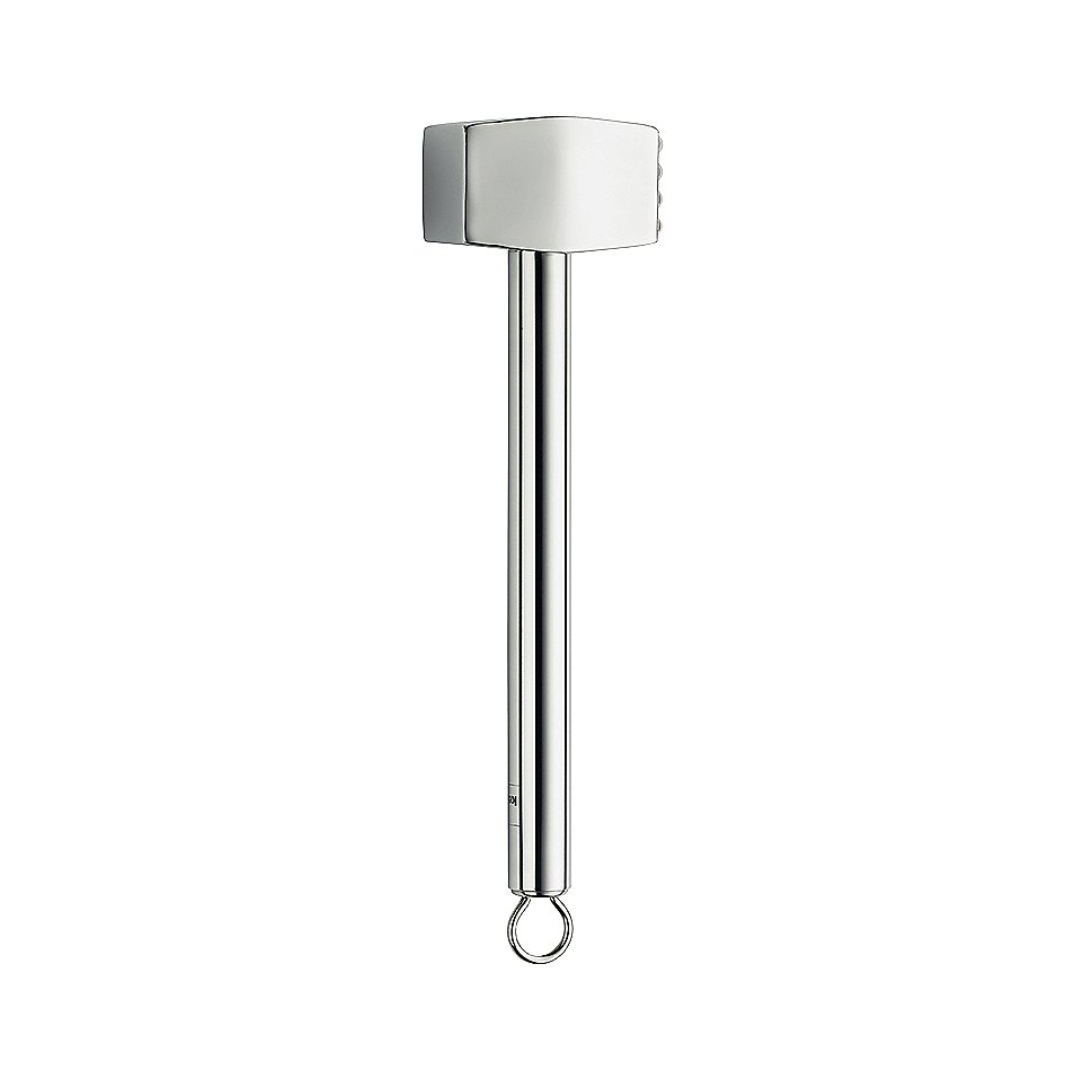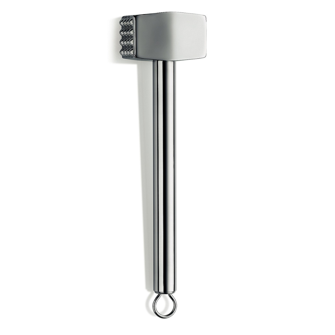 The meat mallet Noha, measuring 25×6 cm, made of high-quality stainless steel, is a practical tool for preparing meat. This robust batter is ideal for tenderizing different types of meat, making it perfect for all lovers of juicy and well-prepared steaks. Thanks to the solid material, it ensures long-term resistance to corrosion, while the ergonomic handle provides a comfortable and safe grip during use. On one side there is a textured surface for additional meat softening, and at the end of the handle there is a ring for easy hanging and convenient storage. An indispensable accessory for every kitchen, it facilitates the preparation of meat for cooking, frying or baking, ensuring better absorption of marinades and spices.