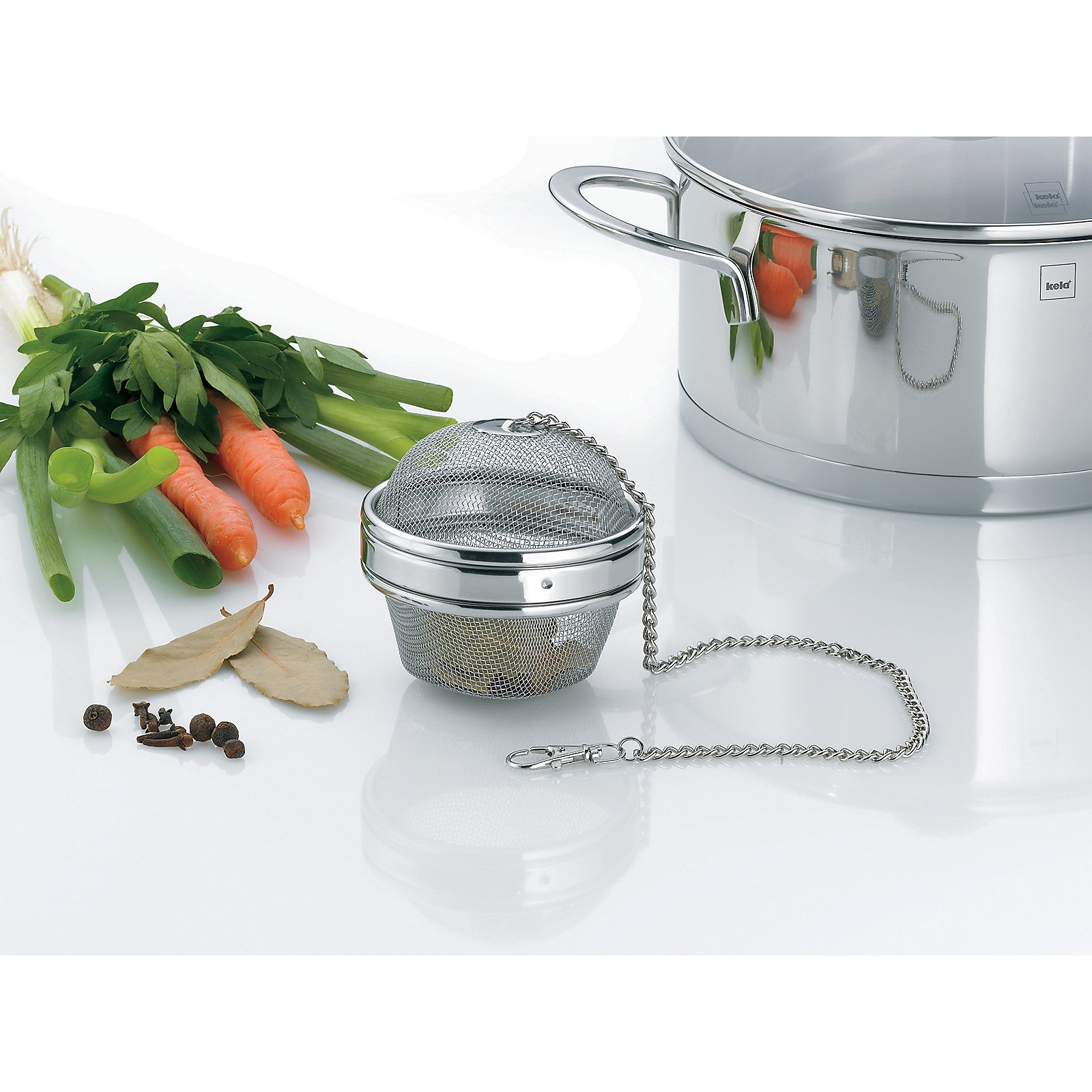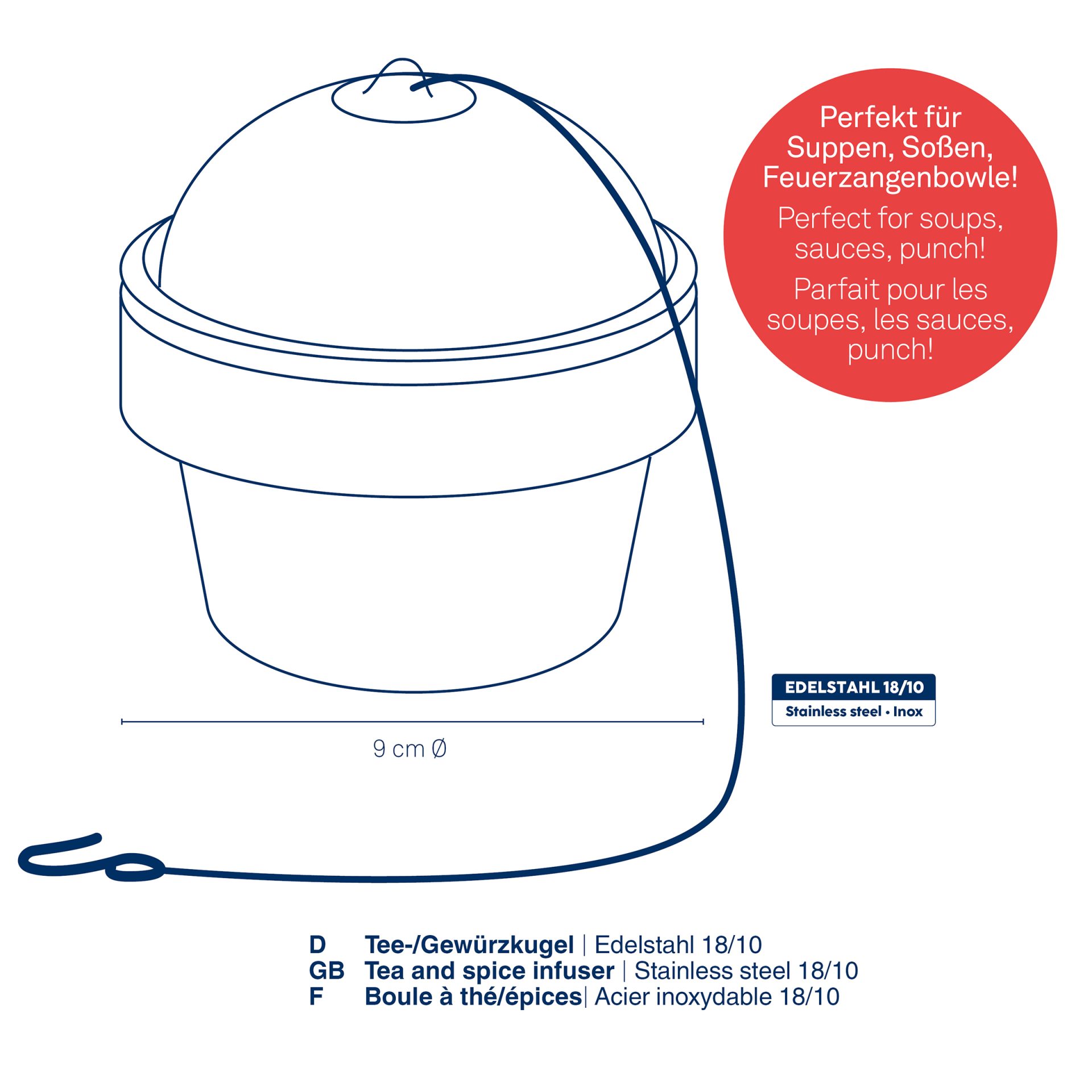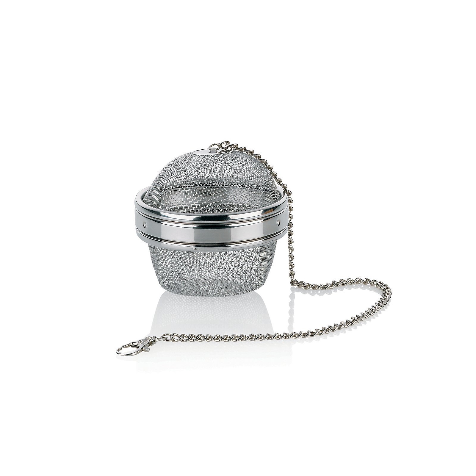 The tea infuser, made of high-quality stainless steel, with a diameter of 9 cm, is the perfect accessory for tea lovers who want to enjoy the fresh taste of their favorite herbal blends. Silver in color, this elegant infuser allows for easy tea preparation, keeping the leaves within its spacious metal frame, while letting only the rich flavor and aroma through. Thanks to its durable stainless steel, the infuser is corrosion resistant and easy to clean, making it a practical solution for everyday use. Its finely perforated surface prevents tea particles from entering your cup, while giving you full control over the strength of your drink. Versatile and easy to use, this infuser adapts to different types of tea – from black and green to herbal teas, delivering the perfect cup every time.