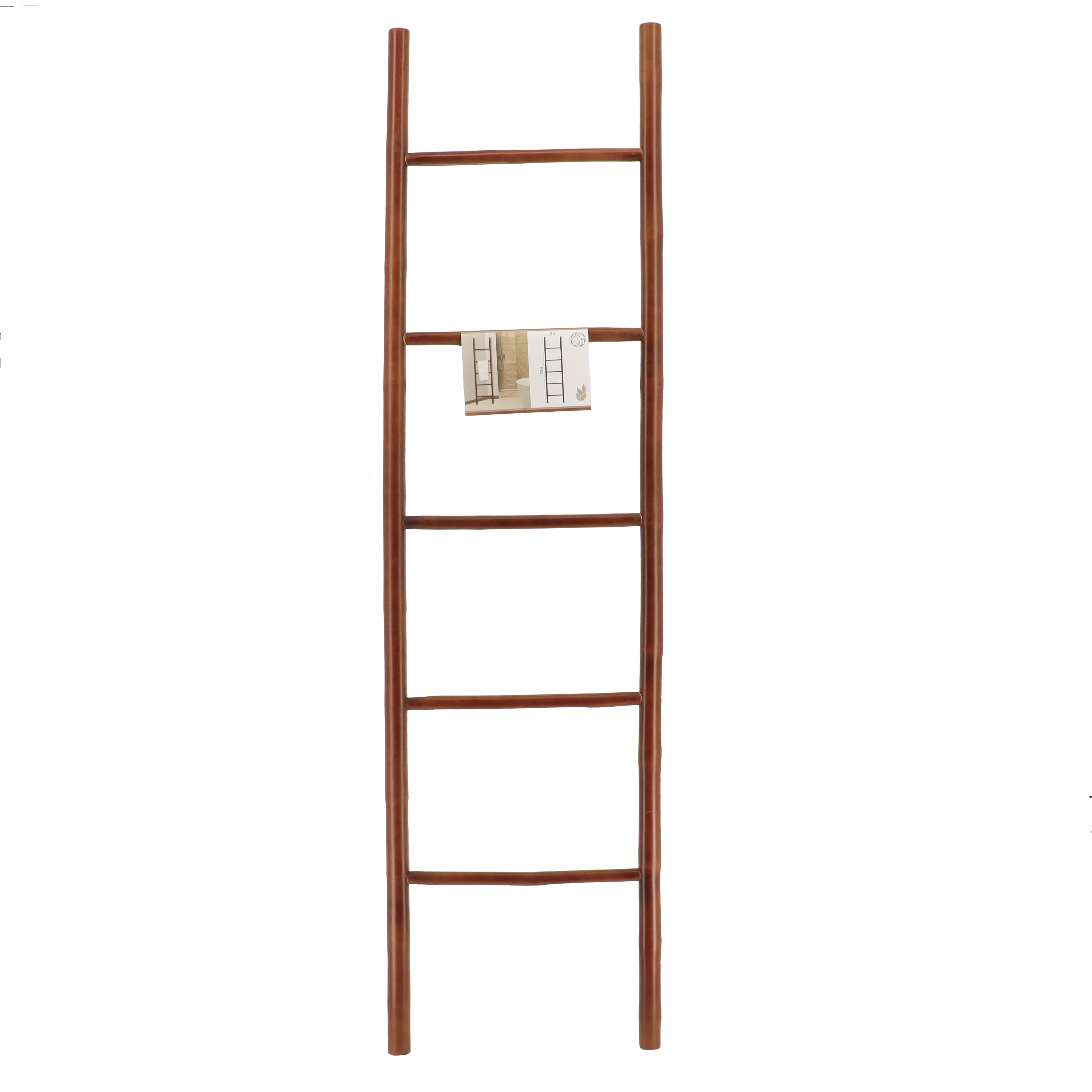 Dekorativne ljestve koje možete upotrijebiti kao platno za osobni izričaj, pretvarajući ih u jedinstveni izlog Vaših omiljenih tekstila i dragih stvari. Dok je njihova primarna uloga možda dekorativna, ljestve ne bježe od funkcionalnosti. Pet čvrstih prečki od bambusa nudi stilsko rješenje za vješanje pokrivača i ručnika dodajući i štih životnom prostoru. Topla završna obrada drva odiše ugodnim ambijentom, pozivajući Vas da se popnete na nove visine udobnosti i stila. Pažljivo odabrana smeđa nijansa nadopunjuje niz paleta boja Vašeg već postojećeg dekora. Dimenzija: 45×2,5x170cm.