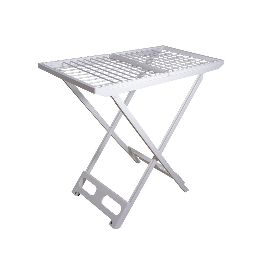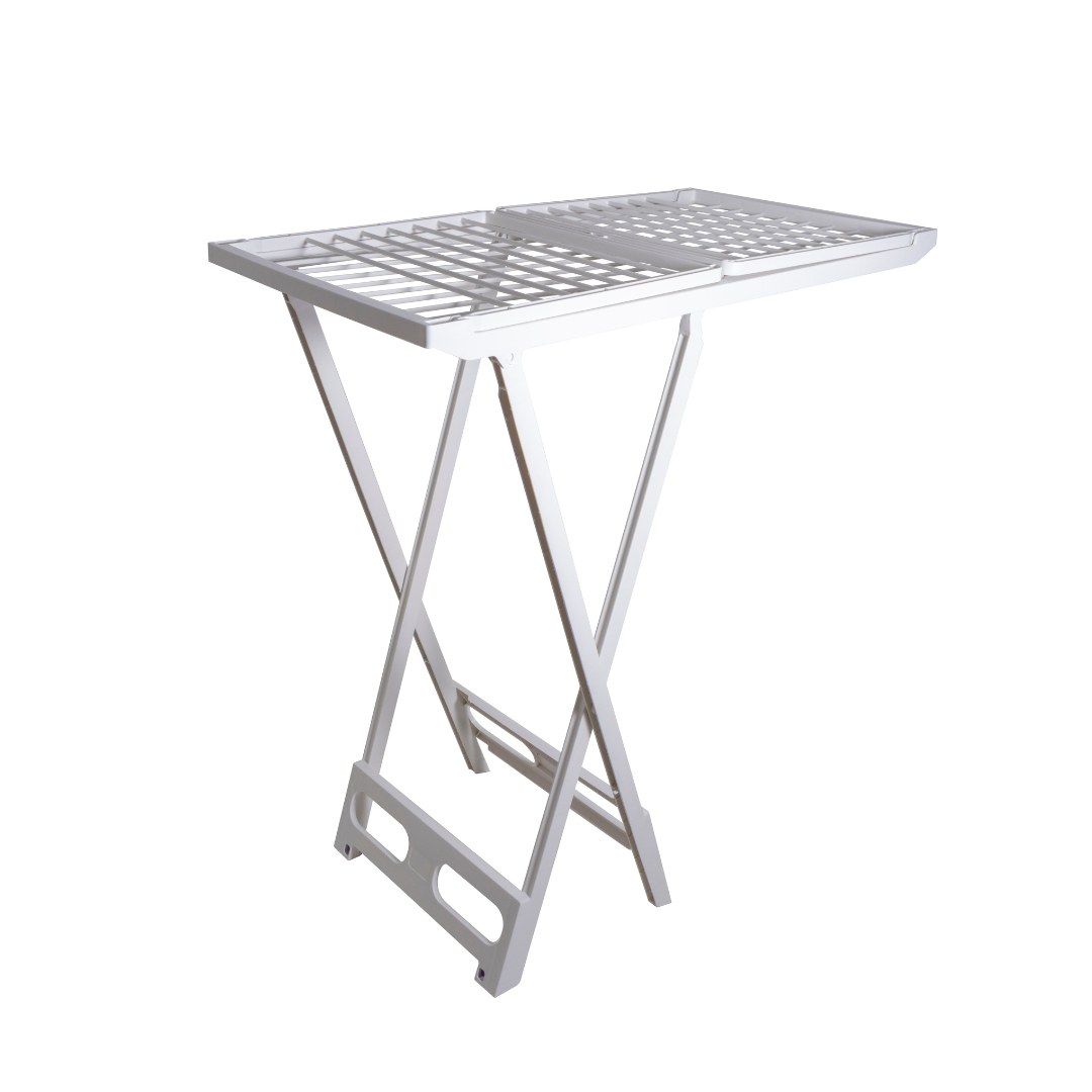 Stalak za sušenje rublja Resina praktično je rješenje za sušenje odjeće u svakom domu, balkonu ili vrtu. S nosivošću do 20 kg, nudi dovoljno prostora za razne vrste odjeće – od svakodnevnih komada do težih tkanina poput ručnika ili posteljine. Izrađen od laganog, ali čvrstog aluminija, osigurava dugotrajnu upotrebu bez hrđanja, što ga čini idealnim i za unutarnje i za vanjske prostore. Njegova bijela boja uklapa se u svaki ambijent, dok dimenzije 181x55x88 cm omogućuju prostranu površinu za sušenje, a istovremeno ne zauzima previše mjesta. Lako se sklapa i sprema kada nije u upotrebi, čineći ga savršenim za manje stanove ili prostore gdje je optimizacija prostora ključna. Funkcionalnost, jednostavnost i trajnost – sve što vam treba za učinkovito sušenje rublja!
