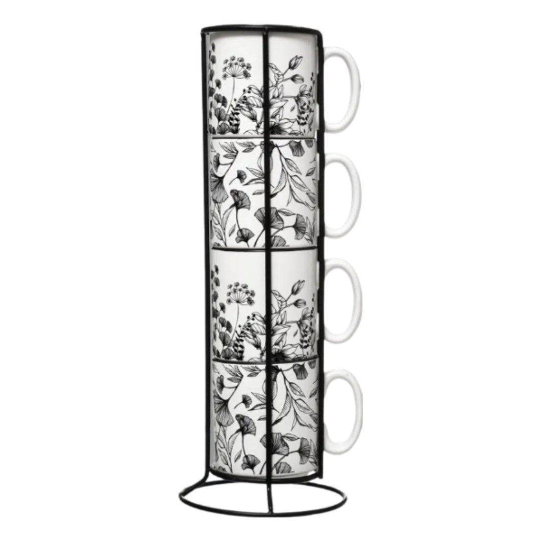 Uživajte u popodnevnom čaju uz bijele porculanske šalice. Set od 4 šalica koje dolaze na stalku predstavalju vizualnu cjelinu koja će doprinijeti interijeru Vaše kuhinje. Dimenzija: 12x12x32 cm.