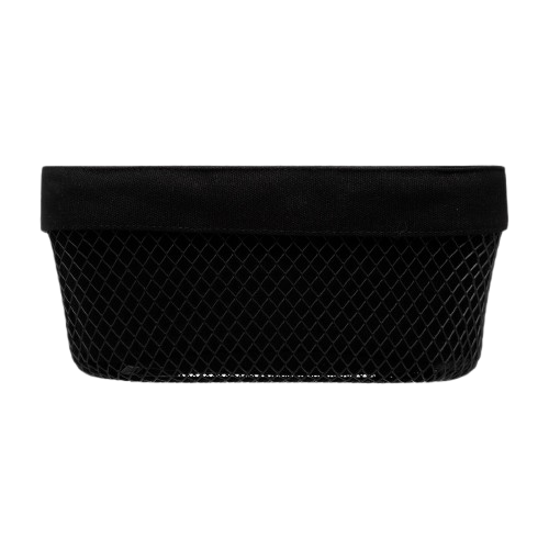 Metalna crna košara u kojoj ćete sa zadovoljstvom posluživati kruh i peciva. Kvadratnog oblika i zaobljenih kutova. Sadrži i tkaninu od pamuka koja se može ukloniti. Dimenzija: 25,5×25,5×11,5 cm.