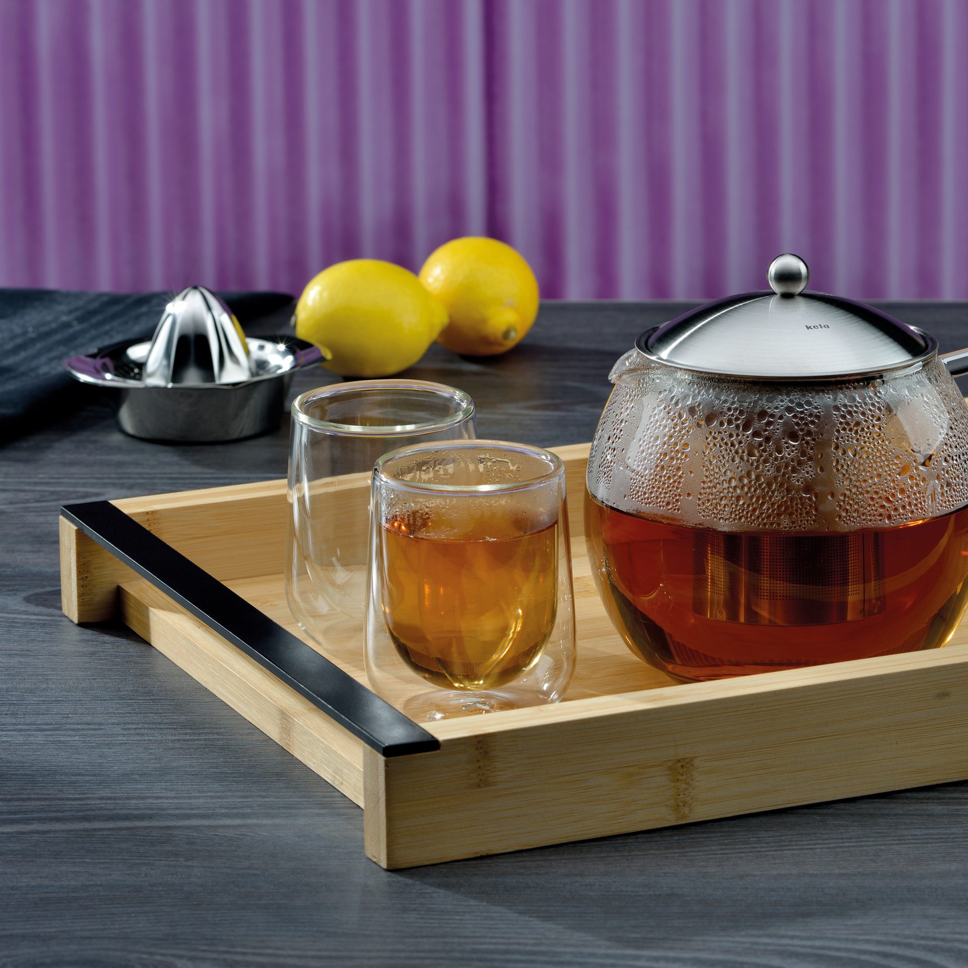 Pladanj za posluživanje Kiril od bambusa u elegantnoj smeđoj boji savršen je za elegantno i praktično posluživanje hrane i pića u svakom domu. Dimenzija 43×27,5×4 cm, ovaj pladanj nudi dovoljno prostora za posluživanje raznih jela, dok podignuti rubovi osiguravaju sigurnost i sprječavaju klizanje predmeta tijekom nošenja. Dizajniran s dvije crne ručke, pladanj omogućuje jednostavno i sigurno rukovanje, čak i kada je potpuno napunjen. Kombinacija prirodnog bambusa i modernih crnih detalja unosi toplinu i stil u vašu kuhinju ili blagovaonicu, čineći ovaj pladanj funkcionalnim i vizualno privlačnim dodatkom. Izrađen od kvalitetnog bambusa, pladanj je lagan, izdržljiv i ekološki prihvatljiv, savršen za svakodnevnu upotrebu, kao i za posebne prigode. Lako se održava, a njegov prirodni izgled i boja čine ga savršenim za razne dekorativne stilove.