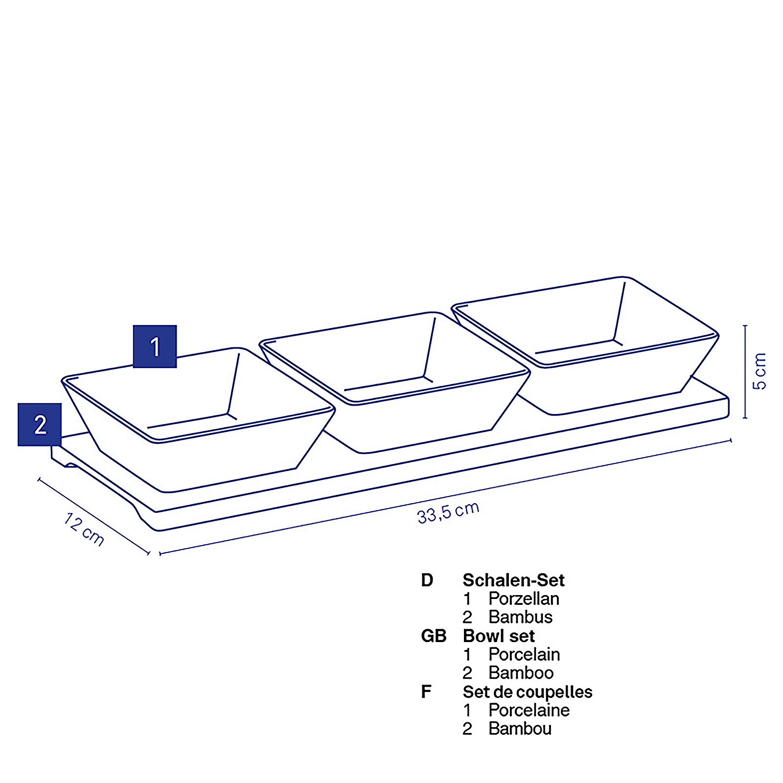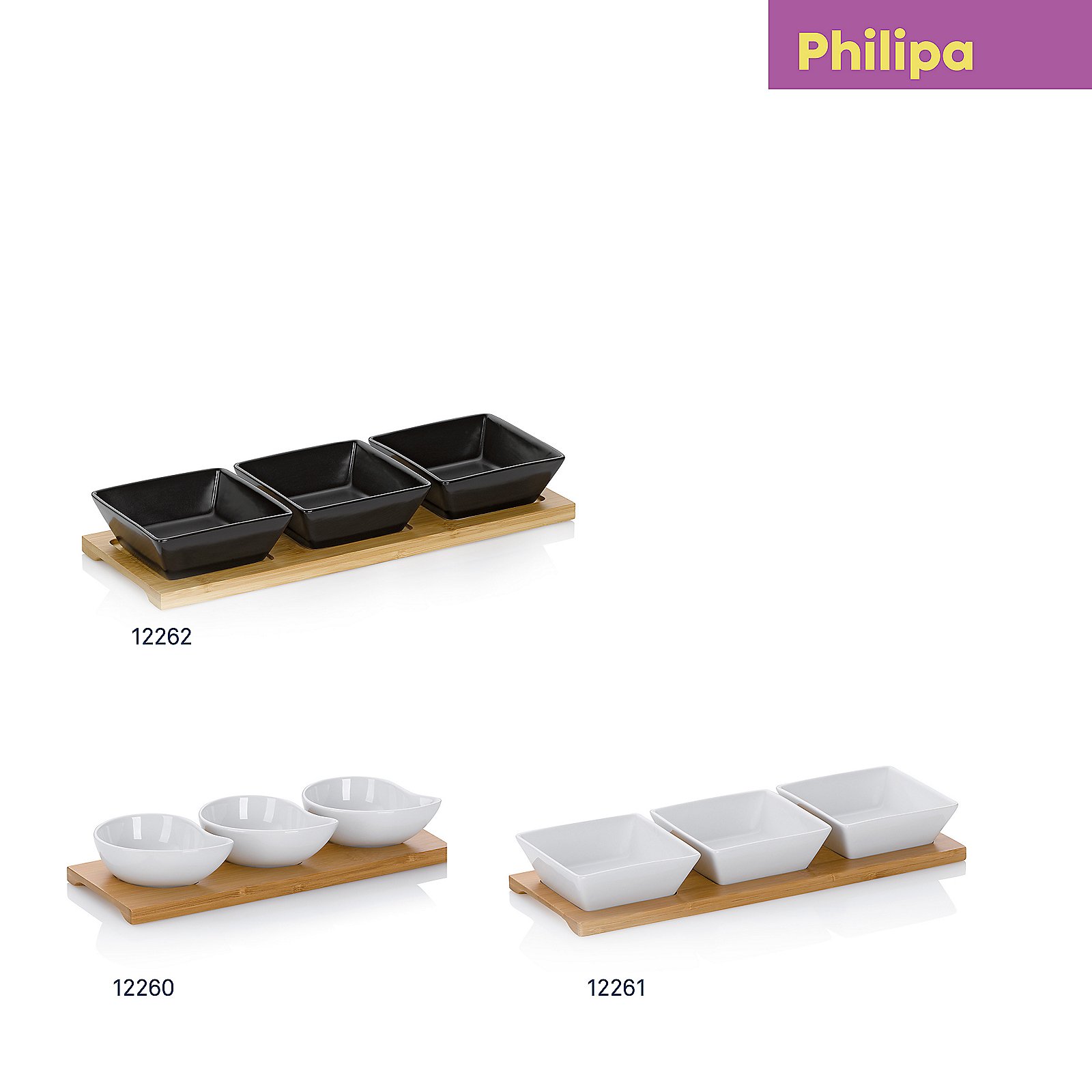 Set Philipa uključuje tri predivne bijele kvadratne porculanske zdjelice koje se savršeno uklapaju u svaki interijer, bilo da se radi o formalnoj večeri ili opuštenom obroku s prijateljima. Porculanske zdjelice su dizajnirane za svestranu upotrebu, idealne za posluživanje raznih delicija poput predjela, umaka, sireva, pa čak i slasnih deserata. Njihova klasična bijela boja omogućuje da se fokus usmjeri na sadržaj, ističući boje i teksture vaših omiljenih jela. Bez obzira na to što poslužujete, ovi elegantni komadi sigurno će privući pažnju vaših gostiju i podići svaki obrok na višu razinu. Set dolazi s praktičnim bambus postoljem dimenzija 33,5x12x5cm koji ne samo da dodaje prirodni i topli dodir vašem stolu, već i pruža savršenu organizaciju. S bambus postoljem, zdjelice su lako dostupne, dok istovremeno zadržavaju uredan i privlačan izgled. Ovaj funkcionalni dodatak idealan je za razne prigode, od obiteljskih večera do zabava s prijateljima. Zahvaljujući svojoj izdržljivosti i lakoći održavanja, porculanske zdjelice se mogu prati u perilici posuđa, a bambus postolje jednostavno se čisti vlažnom krpom.
