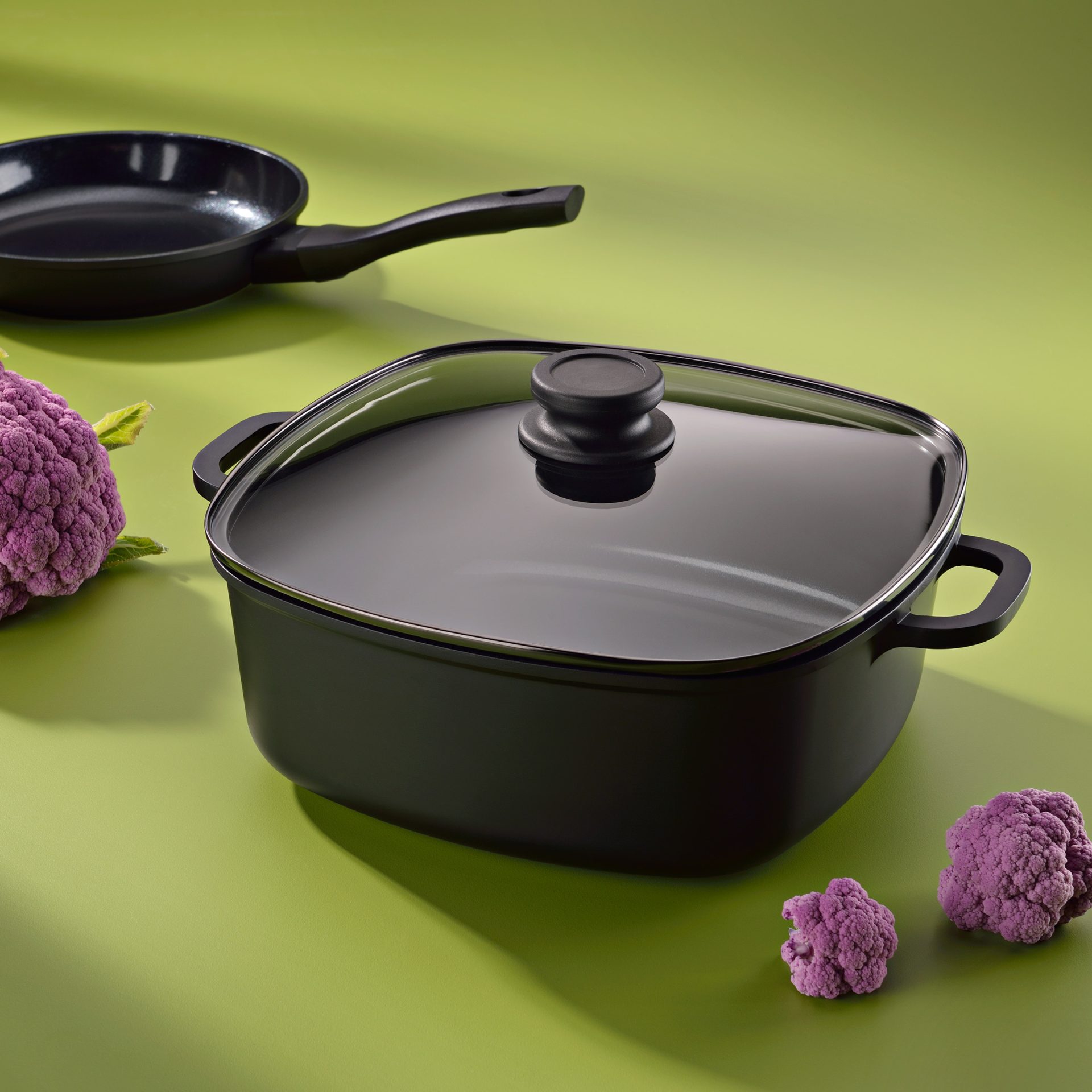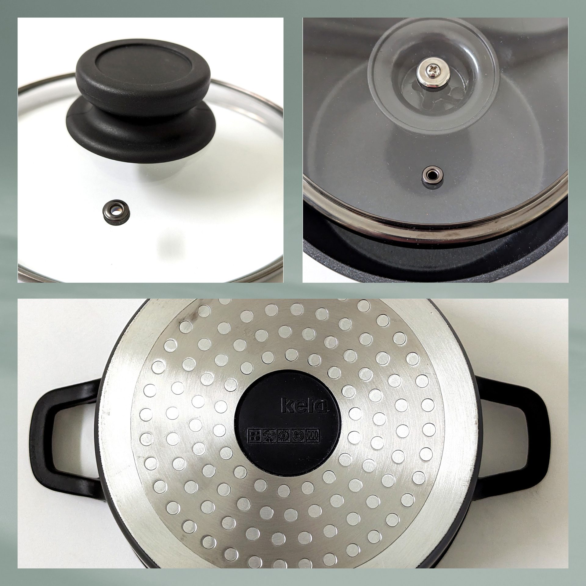 Lonac s poklopcem Atura, izrađen od visokokvalitetnog lijevanog aluminija u modernoj crnoj boji, zapremine 1,7 litara, savršen je izbor za sve one koji žele pripremati ukusna jela s lakoćom i učinkovitošću. Promjer od 20 cm čini ga idealnim za kuhanje manjih porcija, dok njegov elegantan dizajn dodatno oplemenjuje vašu kuhinju. Jedna od ključnih karakteristika ovog lonca je napredna keramička brtva koja ne sadrži PFOA i PTFE, čime se osigurava sigurna i zdrava priprema hrane. Ova inovativna brtva ne samo da jamči dugotrajan učinak neprianjanja, već i omogućuje optimalnu raspodjelu topline tijekom kuhanja. To znači da će vaša hrana biti ravnomjerno kuhana, bez riskiranja da će se zalijepiti za površinu lonca, čime se značajno olakšava čišćenje. Lonac je također opremljen ventilom za paru na poklopcu, što omogućuje kontrolu vlage unutar lonca. Ovaj ventil sprječava prekomjerno nakupljanje pare, čime se osigurava da jela ostanu sočna i ukusna. Prikladan za sve vrste štednjaka, uključujući indukcijske ploče, ovaj lonac nudi svestranost i prilagodljivost u pripremi raznih jela, od juha i variva do rižota i povrća. Svojim izdržljivim materijalom, ovaj lonac jamči dugotrajnu upotrebu i otpornost na svakodnevno trošenje. Jednostavno održavanje čini ga idealnim izborom za užurbane kuhinje; samo ga operite toplom vodom i blagim deterdžentom, a zahvaljujući keramičkom premazu, često nećete ni trebati koristiti deterdžent.