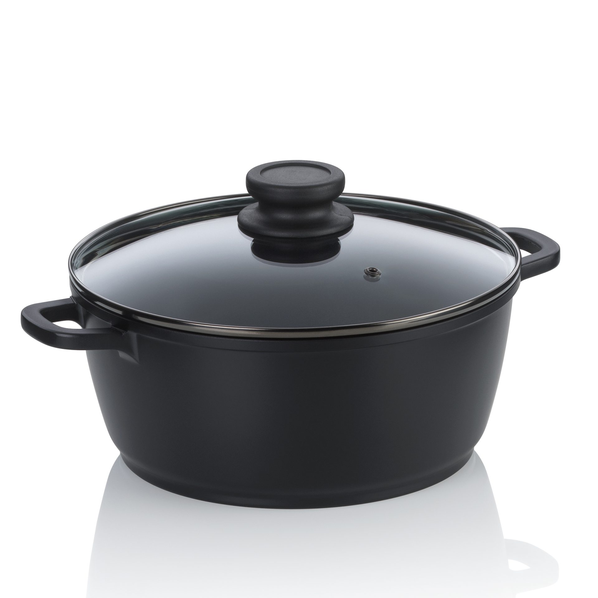 Lonac s poklopcem Atura, izrađen od visokokvalitetnog lijevanog aluminija u modernoj crnoj boji, zapremine 3,2 litara, savršen je izbor za sve one koji žele pripremati ukusna jela s lakoćom i učinkovitošću. Promjer od 24 cm čini ga idealnim za kuhanje manjih porcija, dok njegov elegantan dizajn dodatno oplemenjuje vašu kuhinju. Jedna od ključnih karakteristika ovog lonca je napredna keramička brtva koja ne sadrži PFOA i PTFE, čime se osigurava sigurna i zdrava priprema hrane. Ova inovativna brtva ne samo da jamči dugotrajan učinak neprianjanja, već i omogućuje optimalnu raspodjelu topline tijekom kuhanja. To znači da će vaša hrana biti ravnomjerno kuhana, bez riskiranja da će se zalijepiti za površinu lonca, čime se značajno olakšava čišćenje. Lonac je također opremljen ventilom za paru na poklopcu, što omogućuje kontrolu vlage unutar lonca. Ovaj ventil sprječava prekomjerno nakupljanje pare, čime se osigurava da jela ostanu sočna i ukusna. Prikladan za sve vrste štednjaka, uključujući indukcijske ploče, ovaj lonac nudi svestranost i prilagodljivost u pripremi raznih jela, od juha i variva do rižota i povrća. Svojim izdržljivim materijalom, ovaj lonac jamči dugotrajnu upotrebu i otpornost na svakodnevno trošenje. Jednostavno održavanje čini ga idealnim izborom za užurbane kuhinje; samo ga operite toplom vodom i blagim deterdžentom, a zahvaljujući keramičkom premazu, često nećete ni trebati koristiti deterdžent.