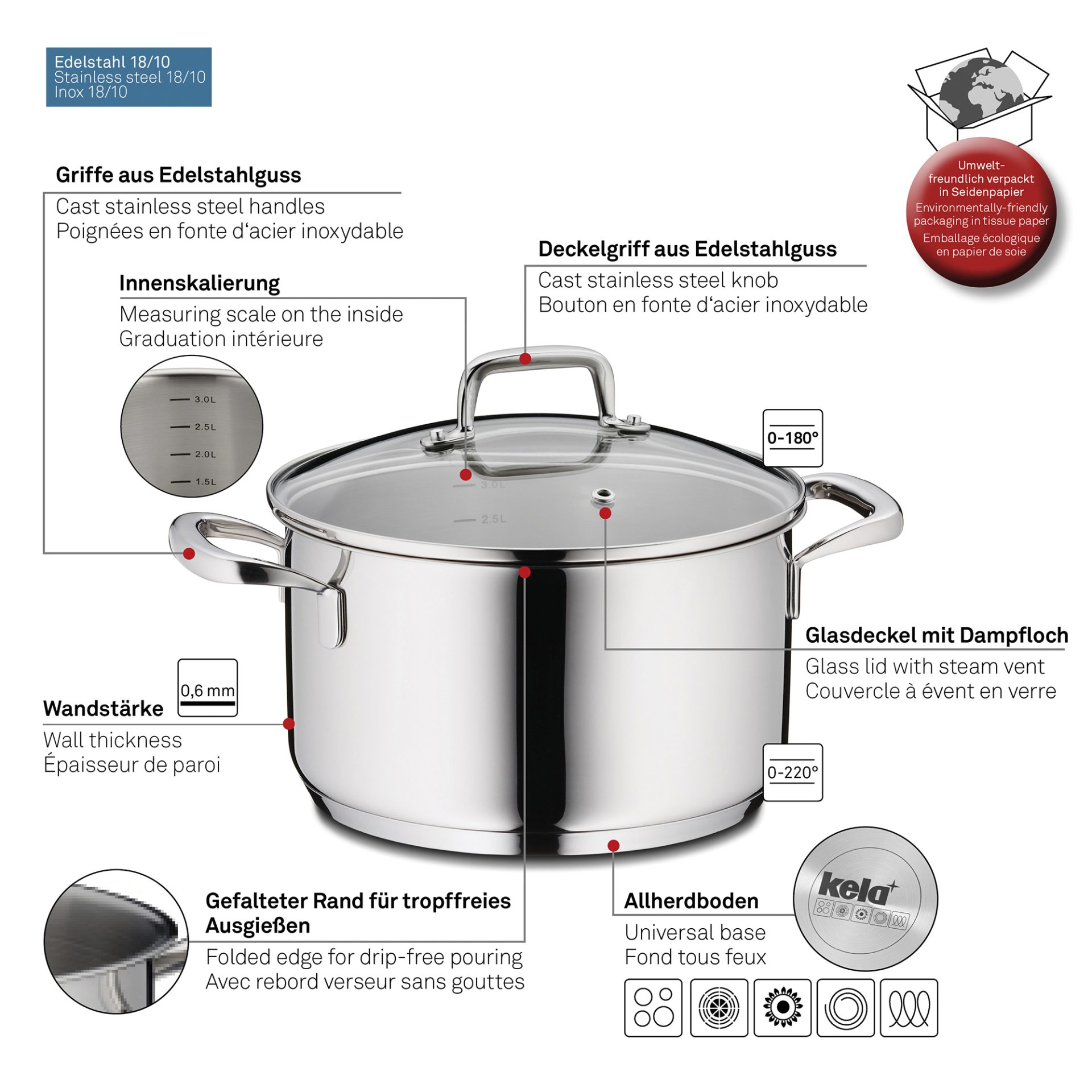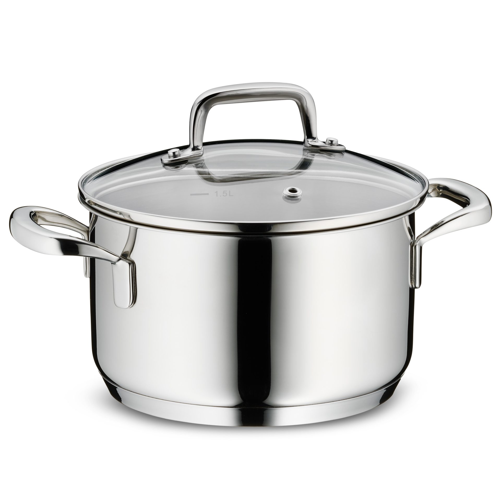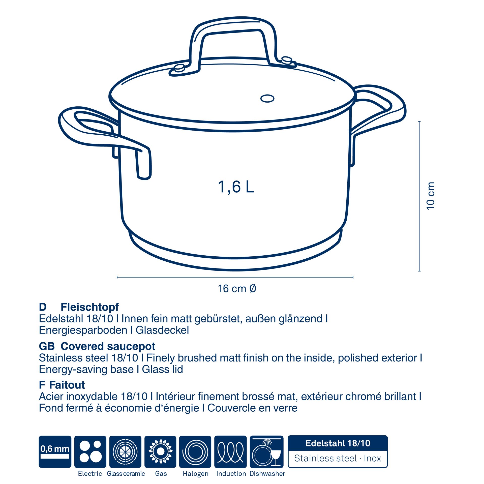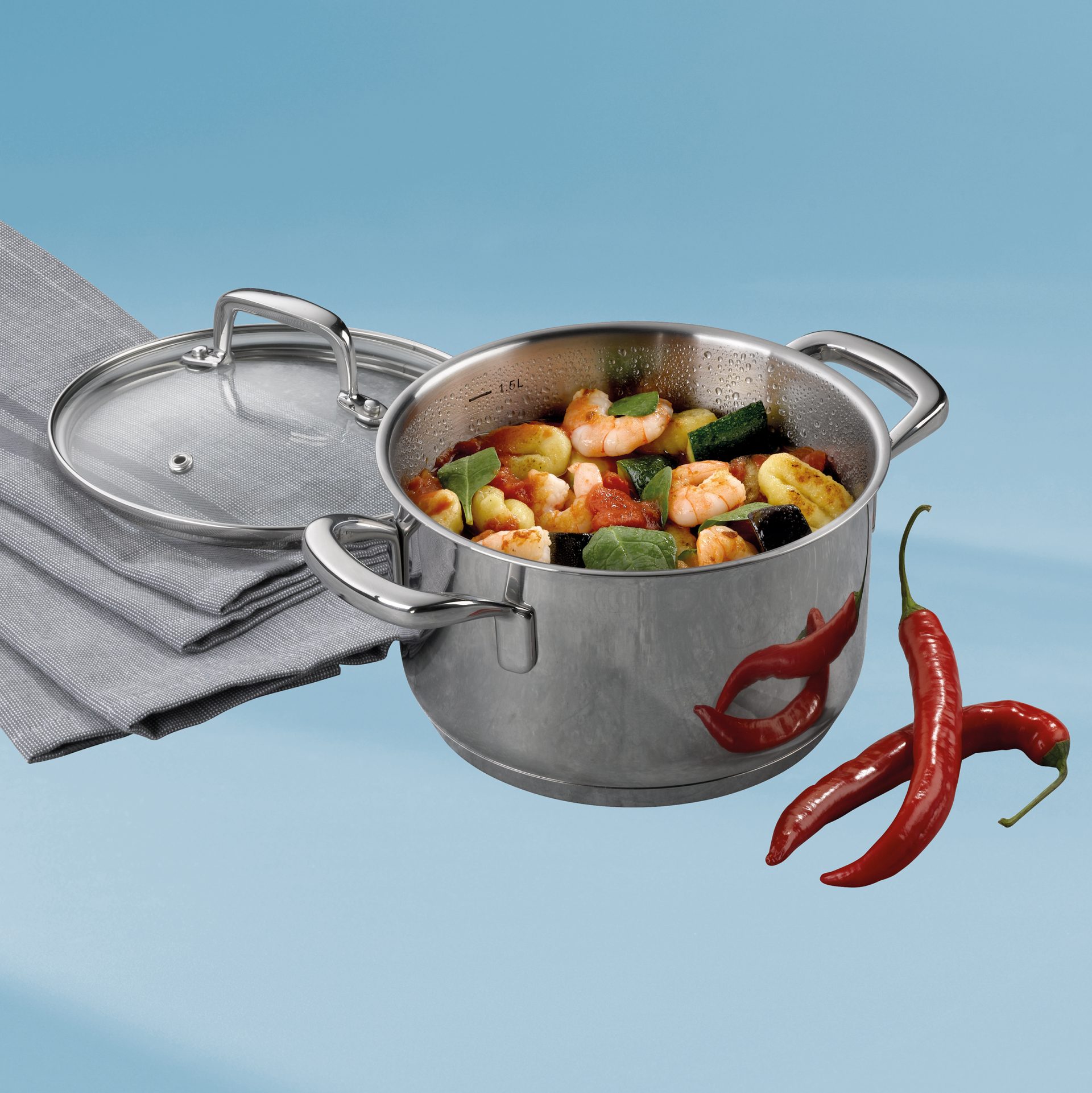 Lonac Flavoria od 1,6 litre izrađen je od visokokvalitetnog nehrđajućeg čelika 18/10, što mu osigurava izuzetnu izdržljivost i otpornost na koroziju, a elegantan srebrni završni sloj savršeno se uklapa u bilo koju kuhinju. Ovaj lonac kombinira vrhunske performanse s modernim dizajnom, osiguravajući vam dugotrajan proizvod koji će zadovoljiti sve vaše kulinarske potrebe. Njegov stakleni poklopac opremljen je ventilom za paru, koji omogućuje ravnomjernu regulaciju temperature, sprječavajući nakupljanje viška pare i time omogućujući postizanje idealnih uvjeta za kuhanje vaših omiljenih jela. Unutarnja strana lonca sadrži praktičnu mjernu ljestvicu, koja vam omogućava lako i precizno očitavanje trenutnog volumena tekućine, što dodatno olakšava pripremu hrane. Flavoria lonac kompatibilan je sa svim vrstama štednjaka, uključujući indukcijske ploče, a njegova visoka otpornost na toplinu omogućuje korištenje na temperaturama do 220°C. Kada koristite lonac s poklopcem, sigurno ga možete zagrijavati do 180°C, pružajući vam maksimalnu fleksibilnost u kuhinji. S ovim loncem ne samo da ćete pripremiti jela vrhunskog okusa, već ćete i uštedjeti vrijeme zahvaljujući njegovoj jednostavnosti i učinkovitosti.