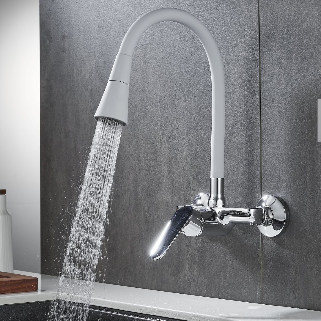 Zidna slavina za sudoper izrađena od visokokvalitetne mjedi u mat sivoj boji donosi moderan i sofisticiran izgled u svaku kuhinju. Fleksibilno crijevo omogućava izuzetnu praktičnost i slobodu pokreta prilikom pranja posuđa, omogućujući lako dosezanje svih kutaka sudopera. Elegantan dizajn mat sive površine savršeno se uklapa u suvremene kuhinje, dodajući dozu luksuza i modernog stila. Ova slavina kombinira funkcionalnost i estetiku, pružajući dugotrajnu izdržljivost zahvaljujući kvalitetnom materijalu od mjedi koji je otporan na koroziju i habanje.
