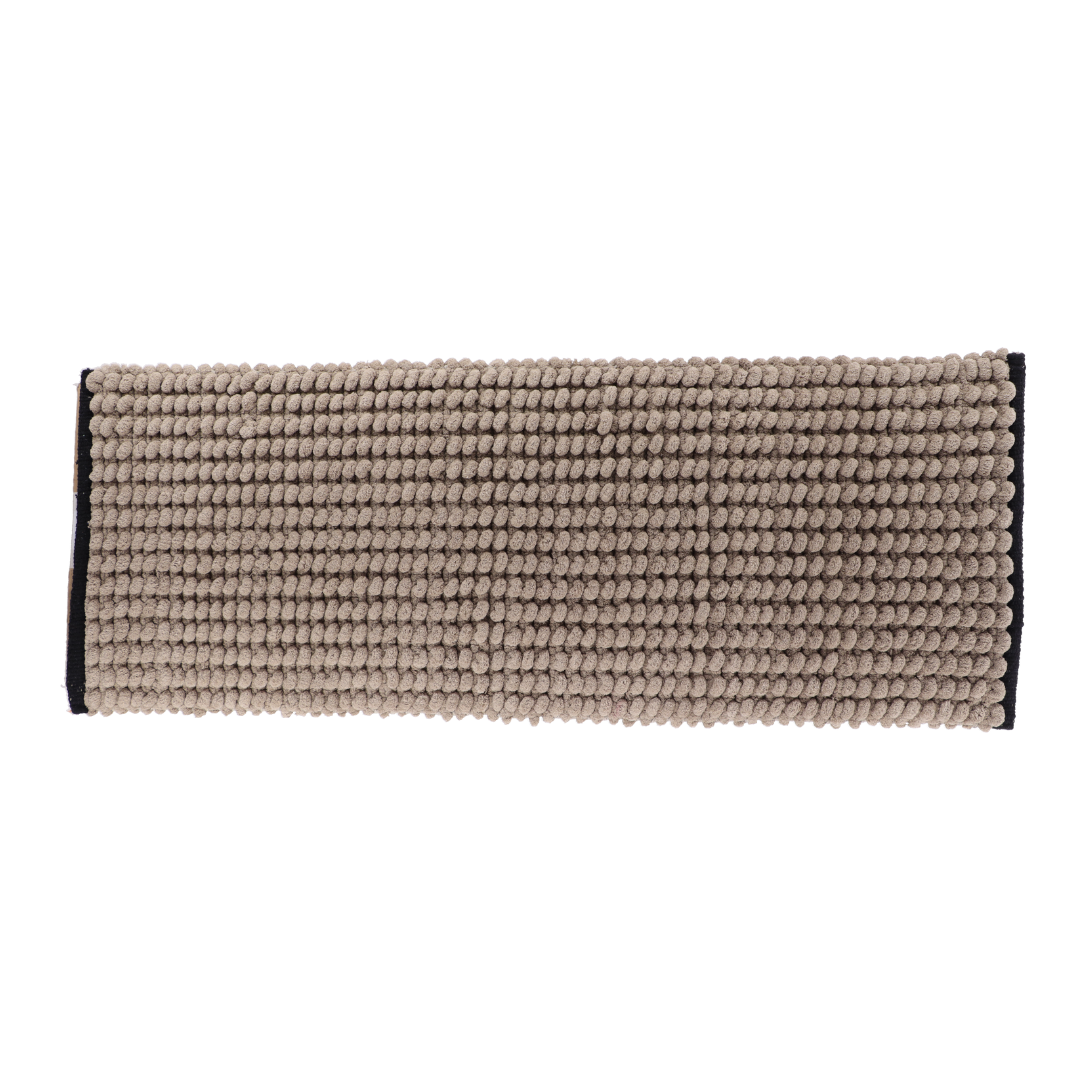 Dok uranjate stopala u mekoću ovog pamučnog tepiha i osjećate kako se stres dana topi, dopustite da luksuzna udobnost i bezvremenska elegancija tepiha poboljšaju Vašu svakodnevnu rutinu i transformiraju Vašu kupaonicu u utočište opuštanja. Dizajniran za praktičnost kao i za udobnost, pamučni tepih ima iznimnu sposobnost upijanja, brzo upija vlagu kako bi podovi bili suhi i spriječili klizanje i padove. Njegova svojstva brzog sušenja osiguravaju da tepih ostane svjež i higijenski, pružajući čisto i ugodno okruženje za kupaonicu. Kombinacija bež i crne boje daje kupaoni elegantan i moderan izgled. Dimenzija: 45x120cm.