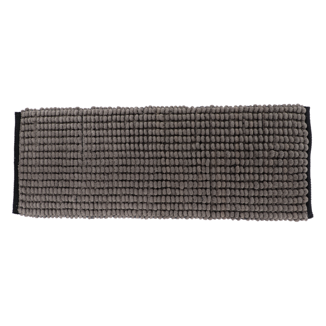 Dok uranjate stopala u mekoću ovog pamučnog tepiha i osjećate kako se stres dana topi, dopustite da luksuzna udobnost i bezvremenska elegancija tepiha poboljšaju Vašu svakodnevnu rutinu i transformiraju Vašu kupaonicu u utočište opuštanja. Dizajniran za praktičnost kao i za udobnost, pamučni tepih ima iznimnu sposobnost upijanja, brzo upija vlagu kako bi podovi bili suhi i spriječili klizanje i padove. Njegova svojstva brzog sušenja osiguravaju da tepih ostane svjež i higijenski, pružajući čisto i ugodno okruženje za kupaonicu. Kombinacija sive i crne boje daje kupaoni elegantan i moderan izgled. Dimenzija: 45x120cm.