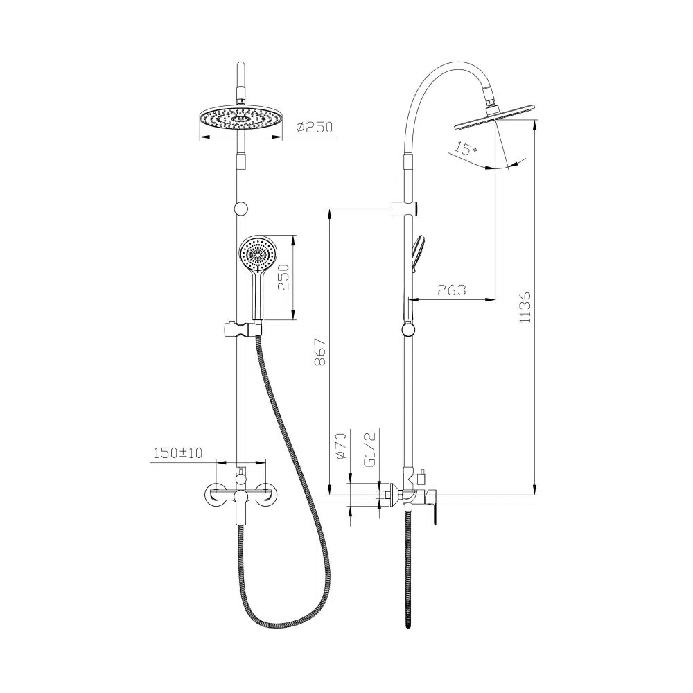 Moderni tuš sustav s dimenzijama 18x12x116 cm donosi funkcionalnost i stil u vašu kupaonicu, pružajući savršeno iskustvo tuširanja. S tuš ružom koja nudi jednu funkciju za široki, ravnomjerni mlaz vode, idealna je za opuštajuće i osvježavajuće tuširanje. Tuš palica s tri funkcije omogućuje prilagodbu vašem raspoloženju – birajte između različitih vrsta mlazova koji se savršeno prilagođavaju vašim potrebama, od blagog raspršivanja do snažnog mlaza za masažu. Izrađen od izdržljivih materijala poput silikona, mjedi i nehrđajućeg čelika SS201, ovaj tuš sustav osigurava dugotrajnost i otpornost na vlagu i habanje. Opremljen je s 1,5-metarskim PVC crijevom koje pruža fleksibilnost i jednostavnost korištenja. Elegantan dizajn, siva boja i kvalitetni materijali čine ga savršenim za modernu kupaonicu, gdje se traži balans između estetike i pouzdanih performansi.