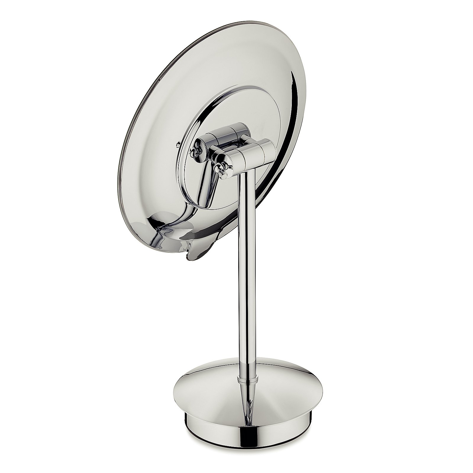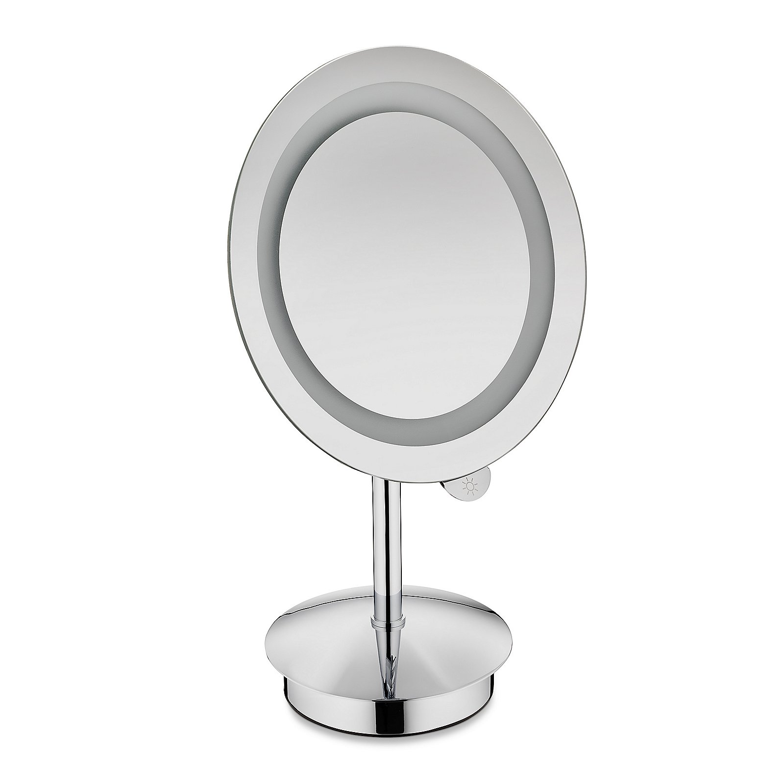 Kozmetičko ogledalo Elisa predstavlja neizostavan dodatak svakoj kupaonici ili toaletnom stolu, pružajući savršenu kombinaciju funkcionalnosti i stila. Visine 38 cm s promjerom od 23 cm, ovo ogledalo nudi široku refleksiju, što olakšava svakodnevne beauty rutine. Izrađeno od mjedi u kromiranoj boji, ne samo da izgleda moderno, već je i izuzetno izdržljivo, osiguravajući dugotrajnu upotrebu. LED svjetlo hladne bijele boje stvara idealne uvjete za nanošenje šminke, čineći svaku sitnicu vidljivijom i detaljnijom. Ova rasvjeta dodatno doprinosi ambijentu, omogućujući vam da se osjećate kao da ste u profesionalnom salonu. Uključivanje svjetla je jednostavno i brzo zahvaljujući tipki na dodir, što čini korištenje ogledala još praktičnijim. Savršeno rješenje za precizno i savršeno oblikovanje izgleda svakog dana!