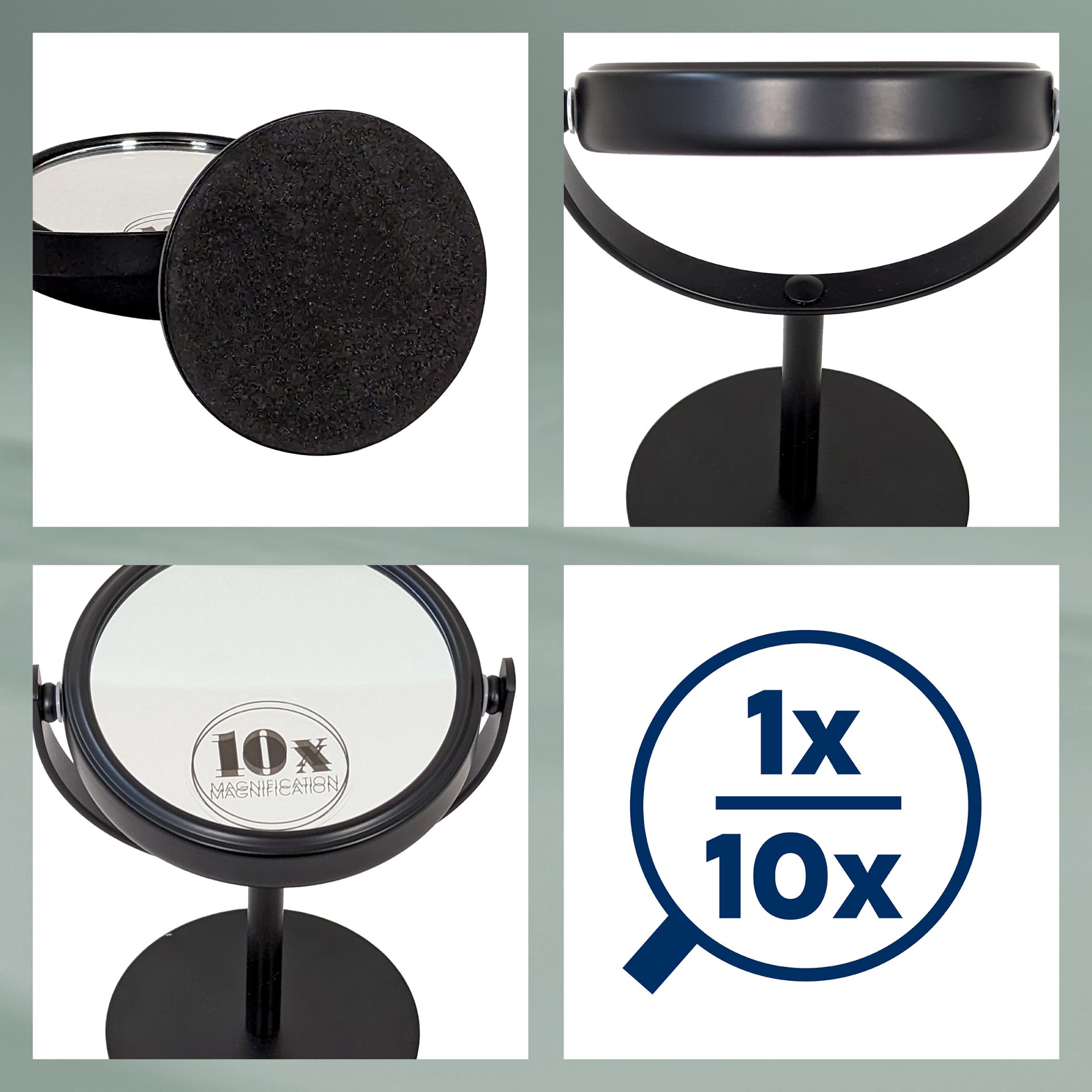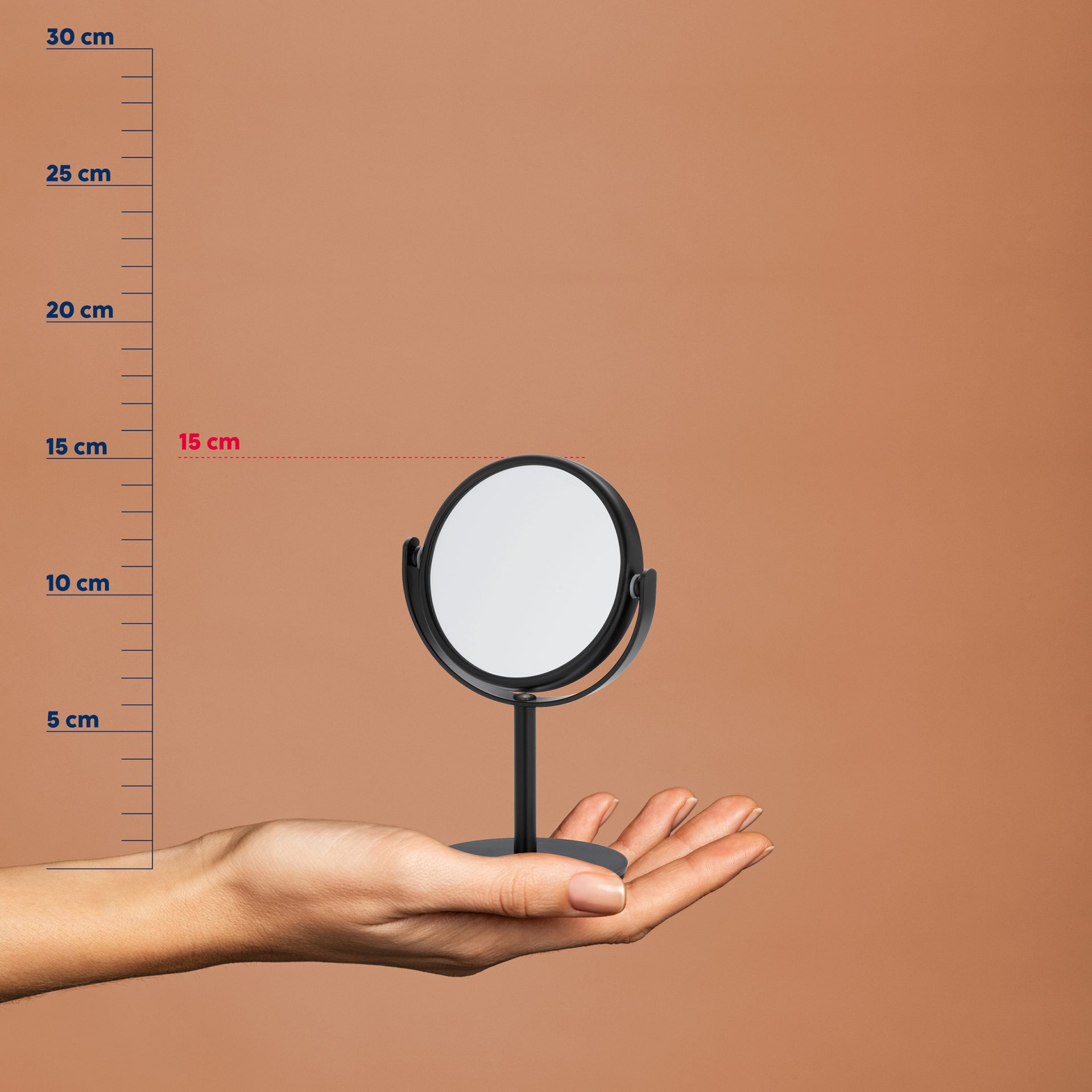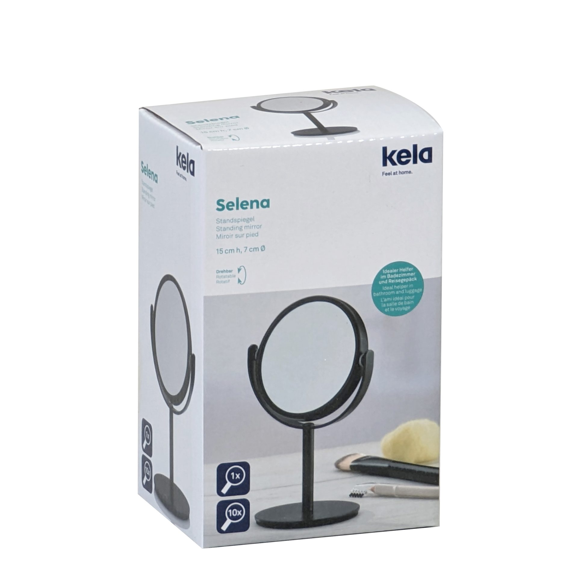 Okruglo stolno ogledalo Selena od metala u elegantnoj crnoj boji predstavlja savršen dodatak svakom prostoru. S promjerom od 8 cm i visinom od 15 cm, ovo kompaktno ogledalo idealno je za postavljanje na toaletni stol, radnu površinu ili u kupaonicu, pružajući praktičnost i stil u jednom. S povećanjem od 10x, ovo ogledalo omogućuje iznimno detaljan pregled, što ga čini izvrsnim izborom za precizne zadatke poput nanošenja šminke, oblikovanja obrva ili njege kože. Njegov dizajn omogućava lako rukovanje i prilagodbu, dok stabilna baza osigurava sigurnost tijekom korištenja. Savršeno za svakodnevnu upotrebu, ovo ogledalo ne samo da olakšava vašu beauty rutinu, već dodaje i sofisticirani dodir svakom interijeru.